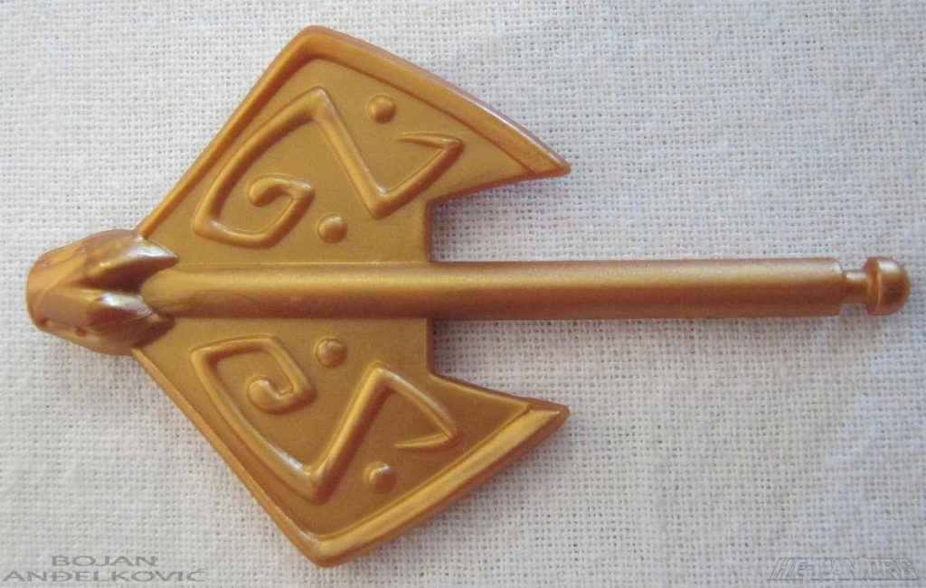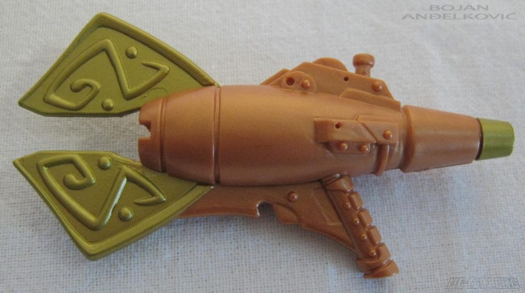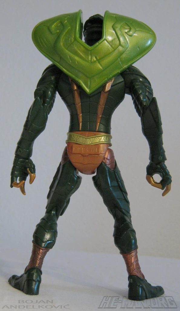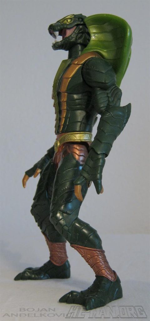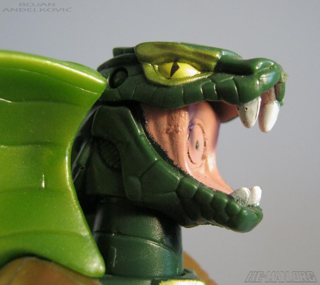 The 200x Kobra Khan figure came with a large blaster. He retained the water-spitting feature of the original 1984 figure, and he came with an oversized gun that could shoot a projectile. He was packaged on the updated green Snake Men card.