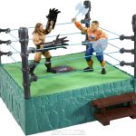 Masters of the WWE Universe Grayskull Mania Ring was a wrestling ring with Grayskull-themed green stones decorating its edges. This was a deluxe set that came with Terror Claws Triple H and a He-Man-themed John Cena figure.