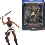 Faction: Heroic Warriors Revelation Teela was based on her appearance in the Netflix Masters of the Universe: Revelation cartoon. She came with removable armor, a combination spear/sword, and two sets of hands. This was based on her look after she resigned her post at Eternos Palace.