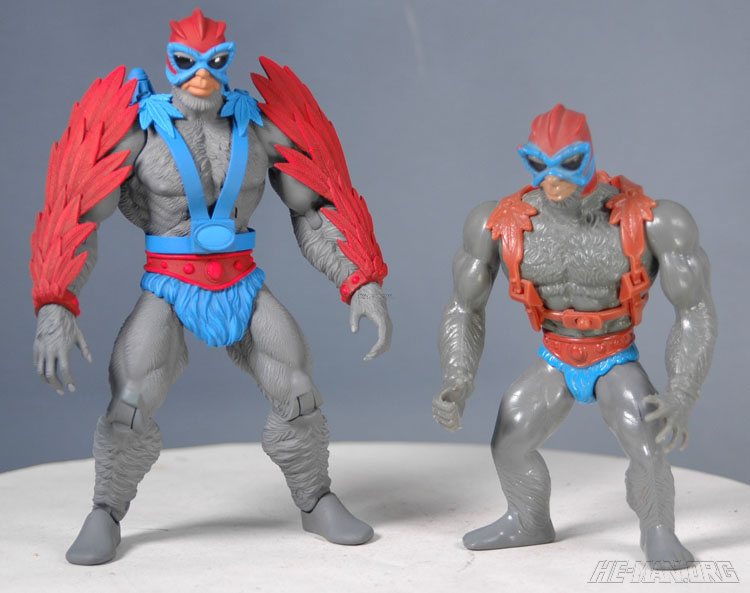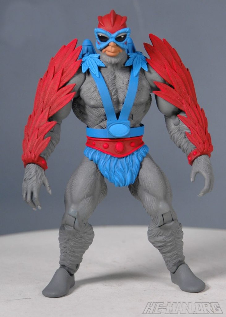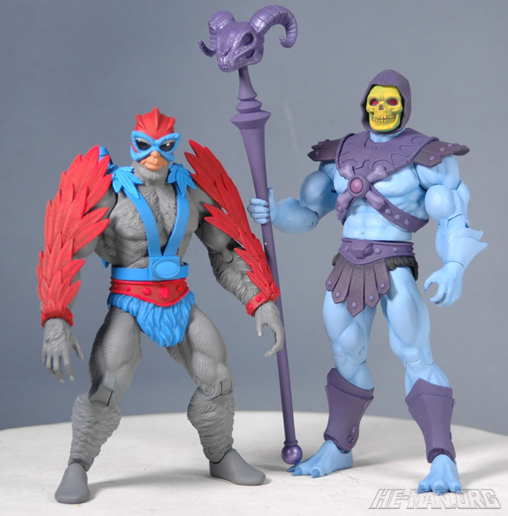 Below are shots of the painted resin prototype Stratos, created by the Four Horsemen. The vintage Stratos figure and the MOTU Classics Skeletor prototype are shown for comparison.