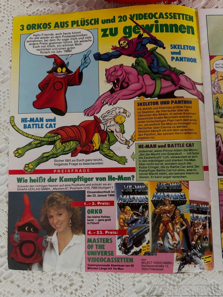 TS: The Ehapa Plush Orko is somewhat of a legend. Ehapa is a publisher that released Masters of the Universe comic books in the 1980s. On December 22, 1987, the Masters Magazine issue No. 6/87 was published. As with every issue, it featured a sweepstakes. Places 1 to 3 won this Plush Orko. Places 4 to 24 won Masters of the Universe VHS tapes. (Editor notes: See picture below)