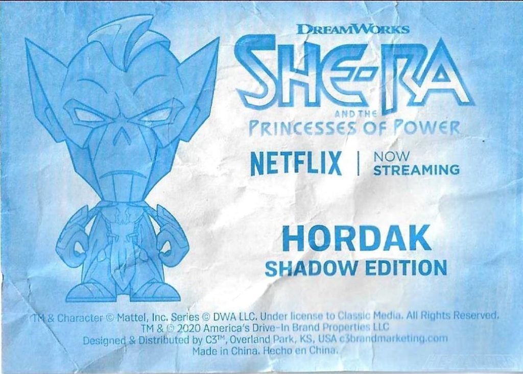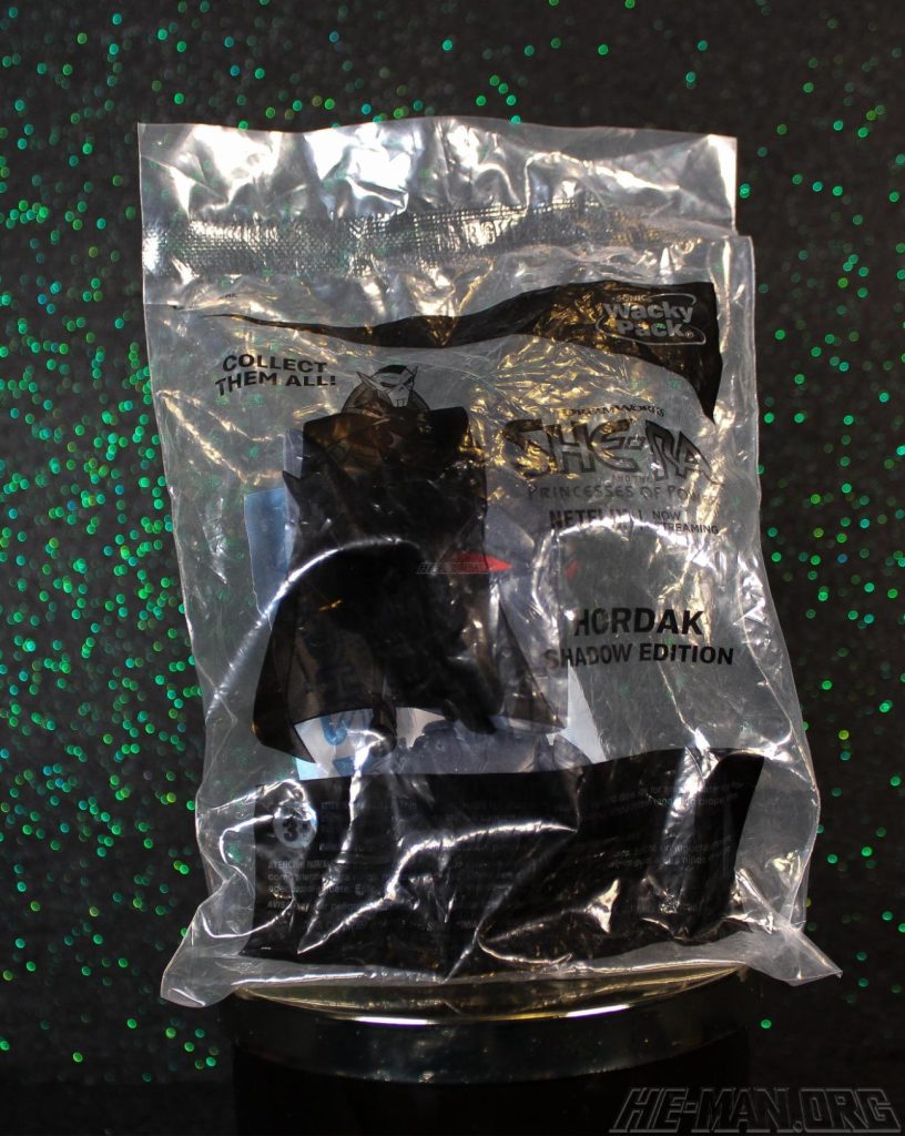 The Shadow Edition of the Hordak action figure depicted the villain of the show in a completely black color scheme, save for his red eyes, and in his suit from season one to early season three. Poseability was limited to the head and arms. Summary and images courtesy of Robert Labandeira.
