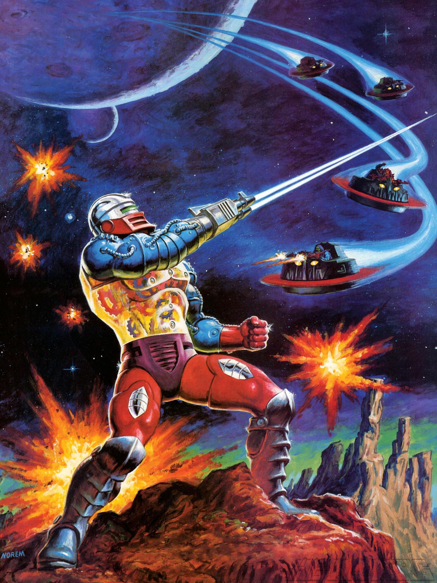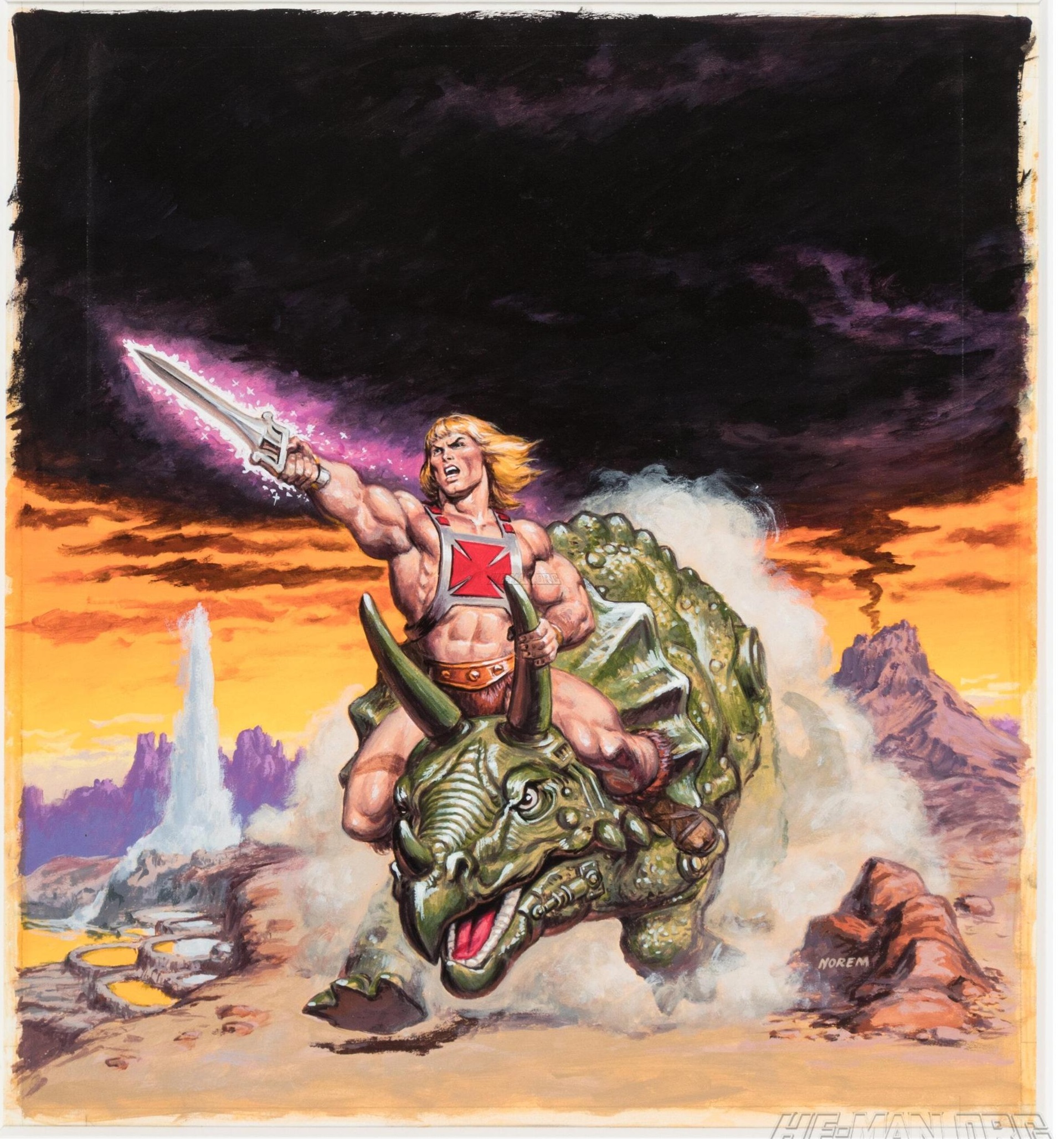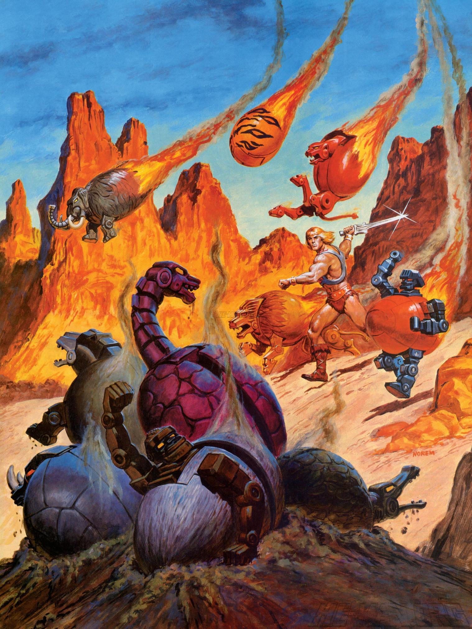 Earl Norem created a number of posters for the Masters of the Universe line, which are collected below. The titles used are descriptive, and don’t represent any official title attached to this artwork.