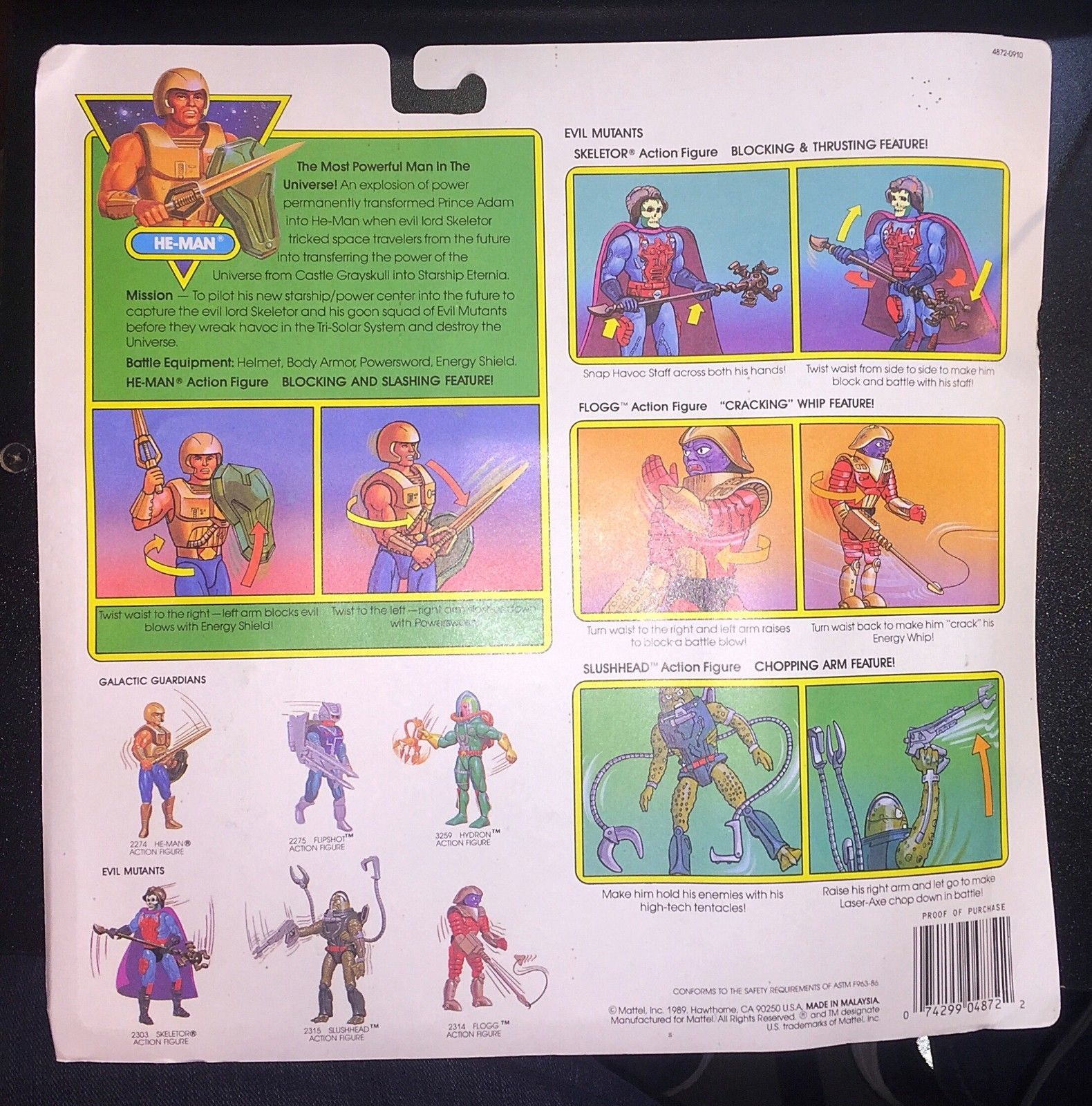 Flogg came packaged on a standard blister card, and in a two-pack with He-Man.