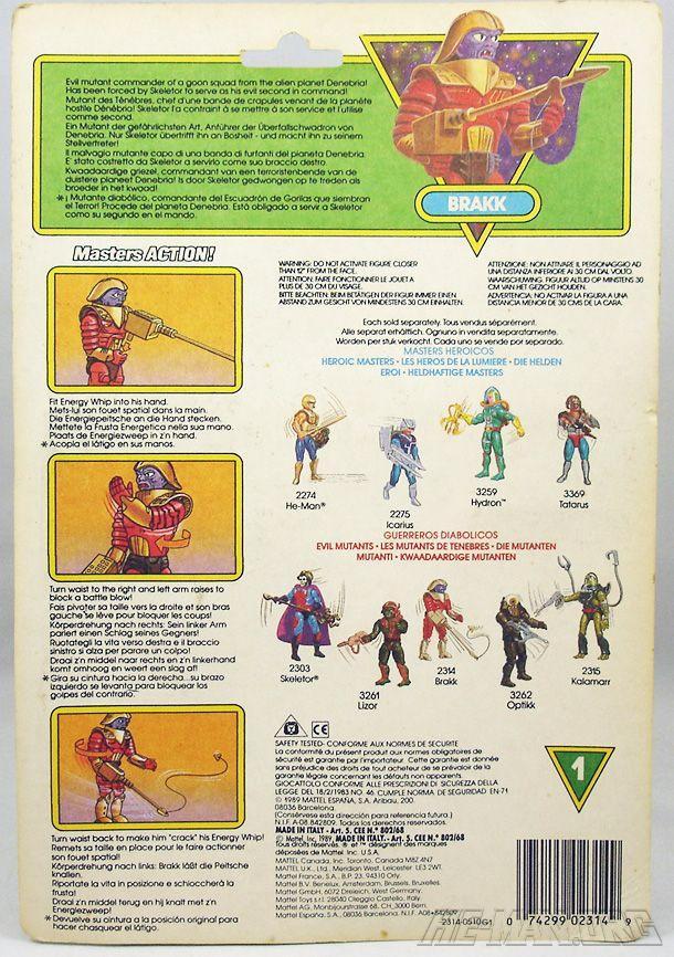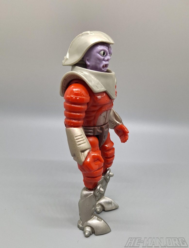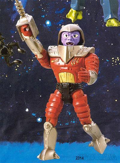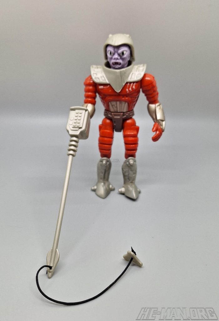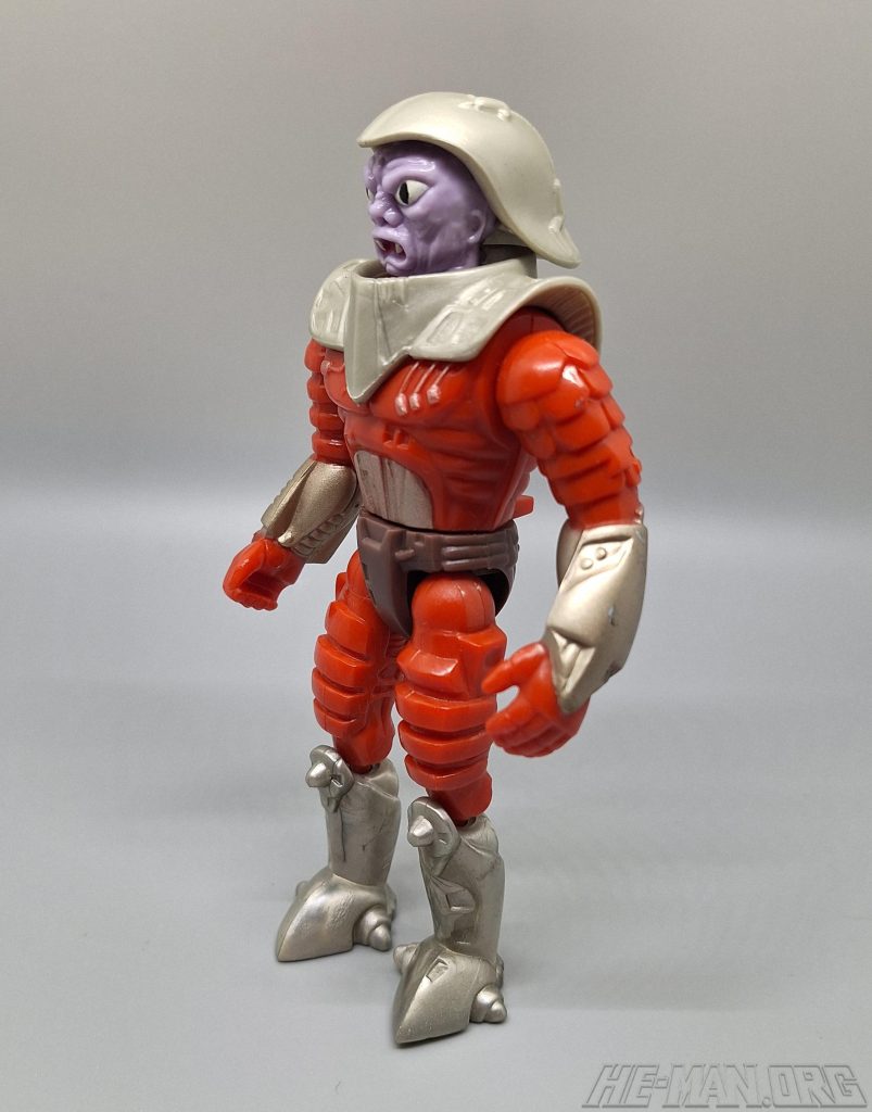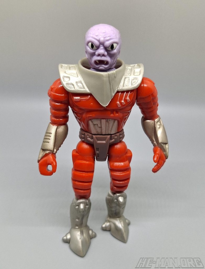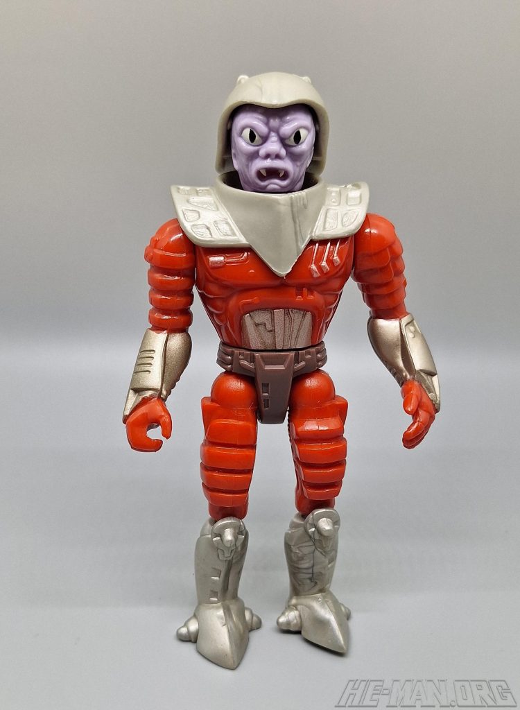 Flogg, the evil mutant commander, was released in 1989. In Europe he was known as “Brakk.” He had a purple face and a costume dominated with red, brown and silver. He came with a removable helmet, shoulder armor, an an energy whip. He had a spring-loaded right arm, allowing him to whip his weapon with considerable force!