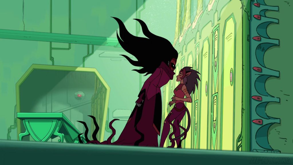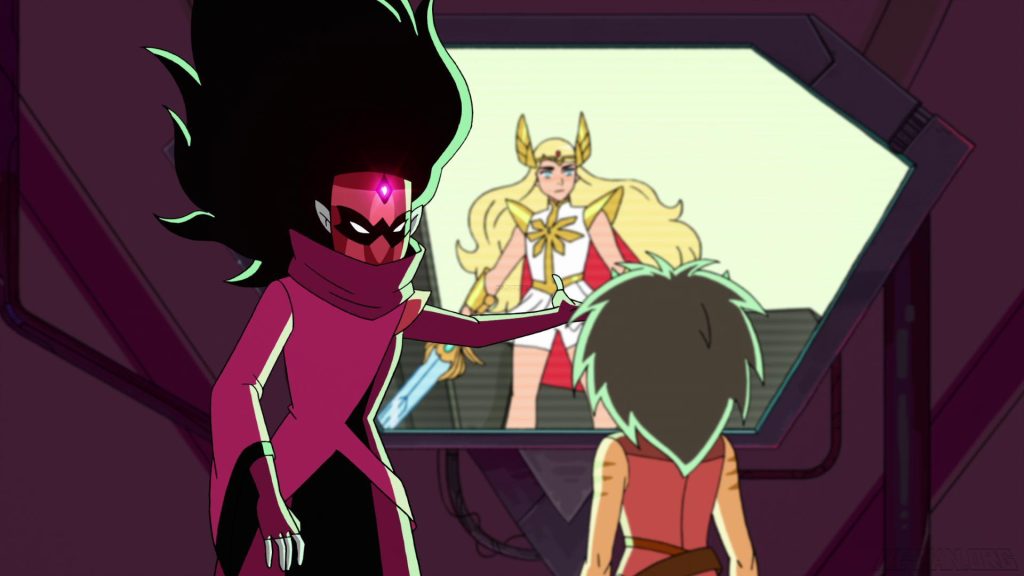 Meanwhile, Shadow Weaver can sense Catra is lying about her knowledge of what happened to Adora. Shadow Weaver and swears to find out the truth, but is soon weakened by an instability of her magic. She returns to her chambers to re-energize with the help of he own runestone, the Black Garnet.