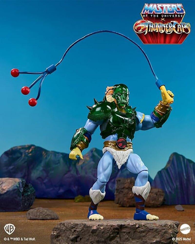 Masters of the Universe x Thundercats Tygra featured removable costume elements and swappable boots to allow the figure to look like the classic Thundercats character or a MOTU-ized version of the character. Aside from the removable costume parts, He also came with his signature flail weapon.