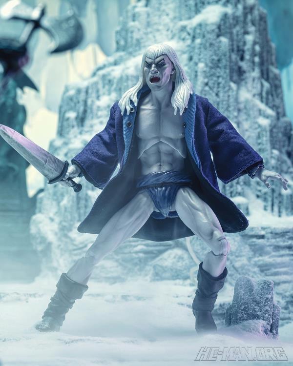The latest Frazetta Girls ICON Collectibles figure is available for pre-order. This time around they are returning to the world of Fire and Ice, with the sorcerer-villain Nekron! The figure comes with a cloth robe and belt, three heads, two removable hair pieces, five sets of hands, a sword, and a deluxe throne. He is available for pre-order on the Frazetta Girls site, Big Bad Toy Store, and other venues.