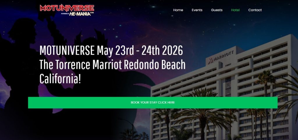 MOTUNIVERSE is a brand new He-Man and She-Ra themed convention taking place on May 23-24, 2026. Hotel reservations for the event are now live! You can book your reservation for a room at the Terrence Marriot hotel here. The event is the brainchild of Event Directors Mega Jay Retro and Mike Gordon (aka Eternian Royalty).