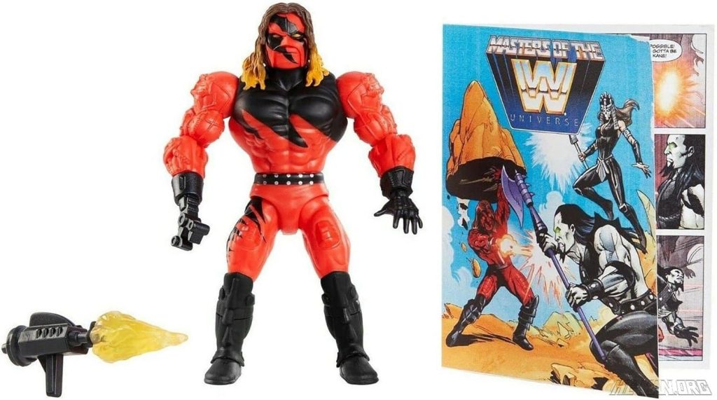 Masters of the WWE Universe Kane had a Roboto-themed outfit, and included two removable arm attachments and a muzzle flash effect.