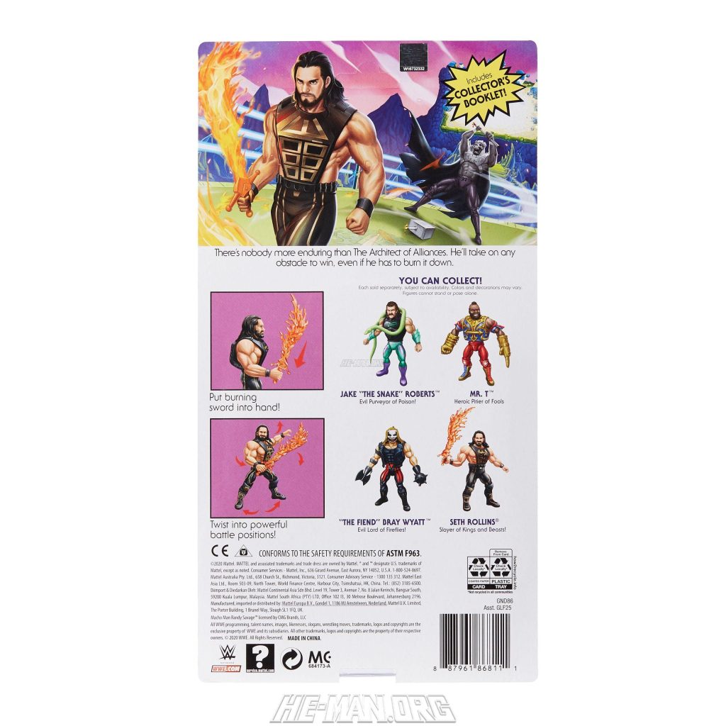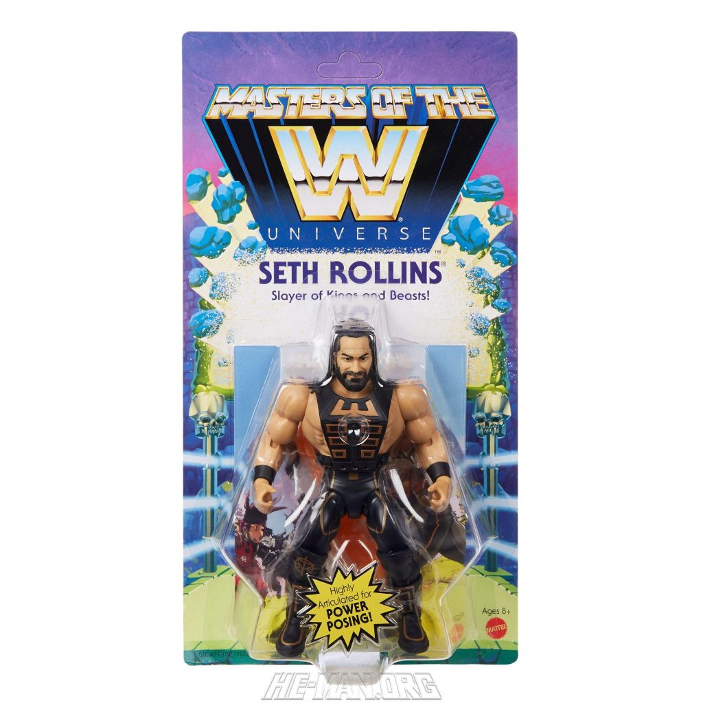 Masters of the WWE Universe Seth Rollins came with repainted Zodac armor and a repainted Draego-Man sword from the MOTU Classics line.