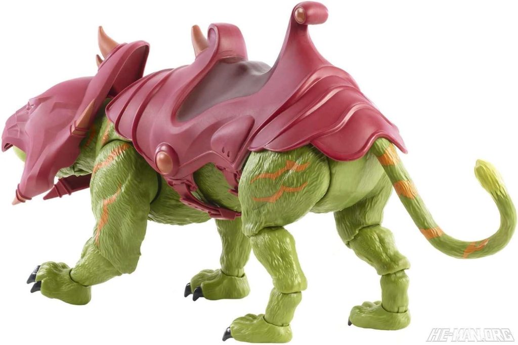 Revelation Battle Cat was based on his appearance in the Netflix Masters of the Universe: Revelation cartoon. He came with a removable saddle and helmet, and had a cringer-life face sculpt.