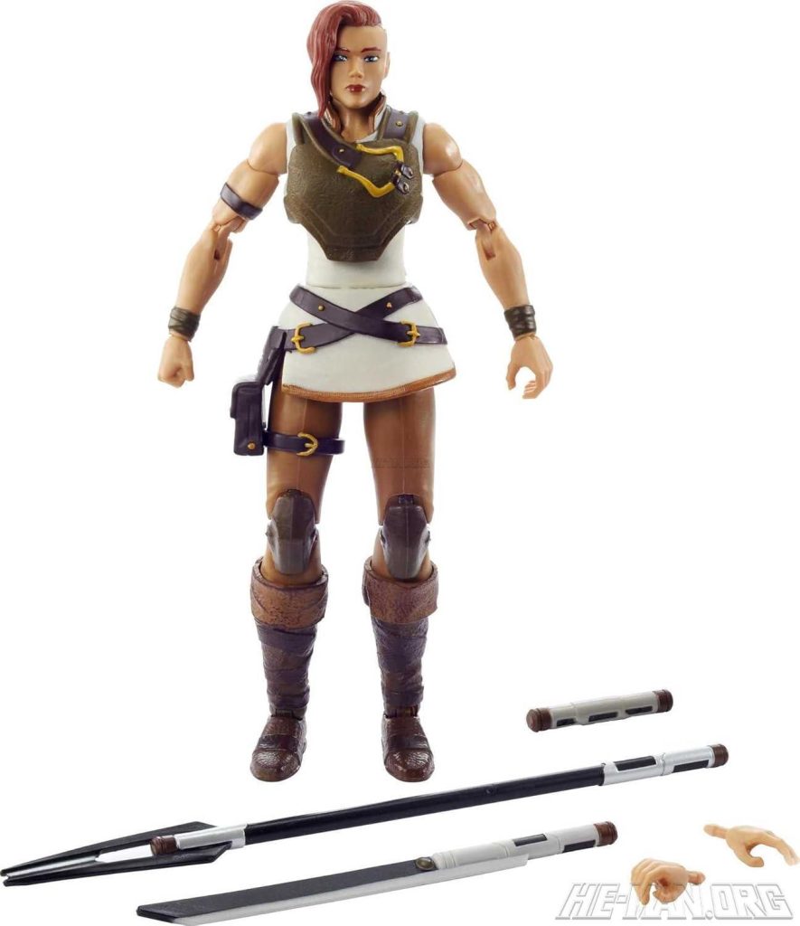 Revelation Teela was based on her appearance in the Netflix Masters of the Universe: Revelation cartoon. She came with removable armor, a combination spear/sword, and two sets of hands. This was based on her look after she resigned her post at Eternos Palace.
