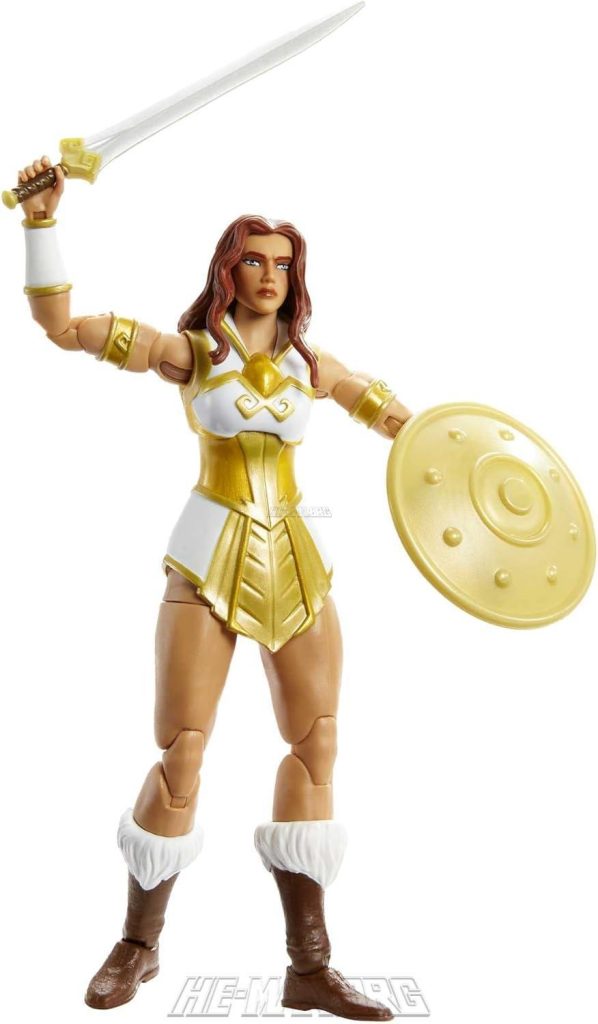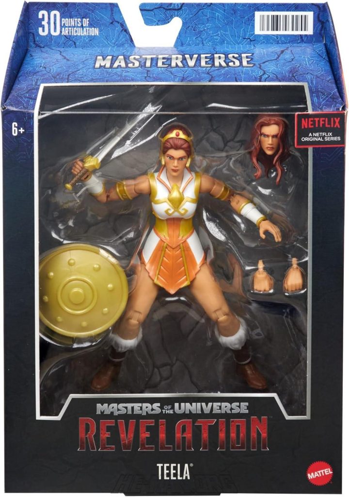 Revelation Teela was based on the character as she appeared in the cartoon series. She came with a sword, a shield, two heads, an an extra set of hands.