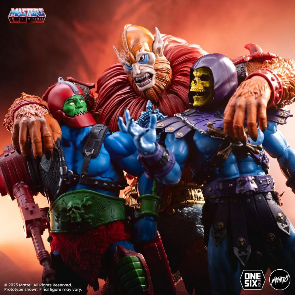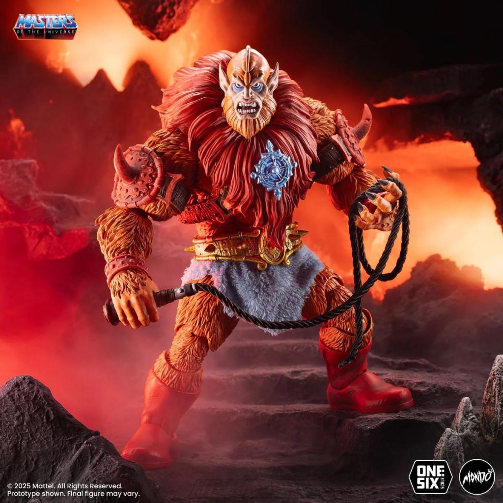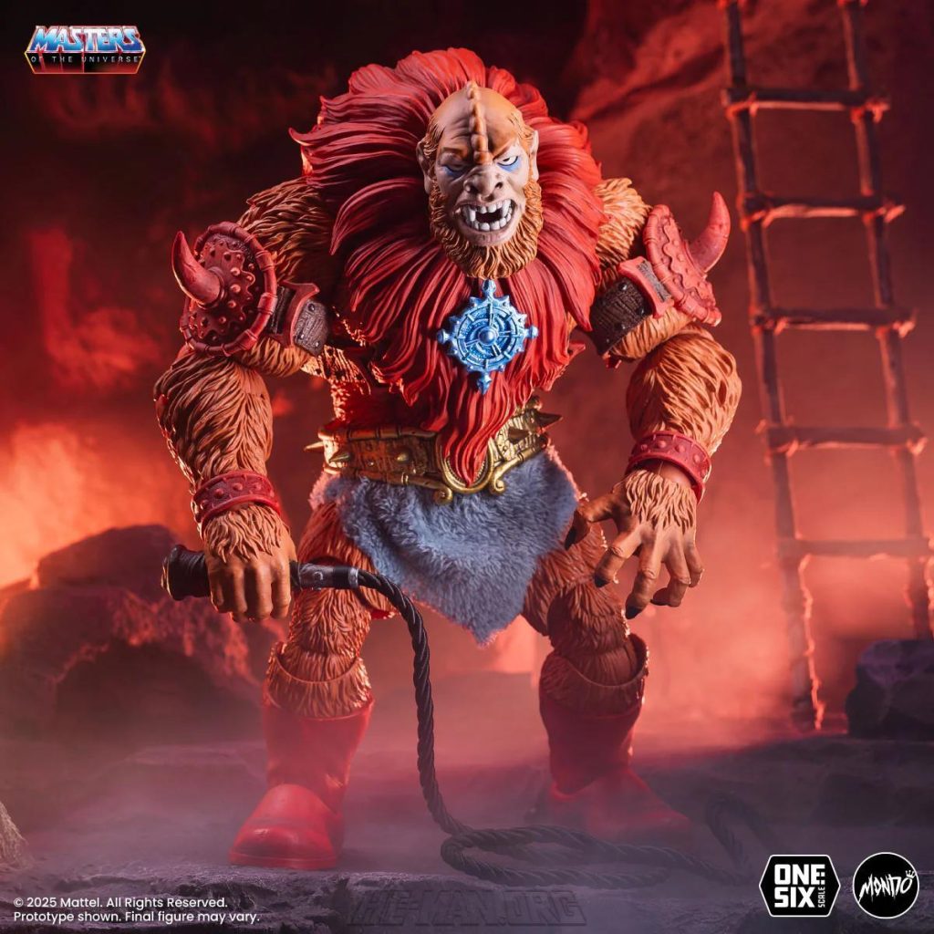 Mondo’s Classic Variant of Beast Man was based on the character as he appeared in the Filmation He-Man and the Masters of the Universe cartoon. He included four sets of hands, four heads, a whip, a goblet, meat, a sword, and a gun based on his appearance in the 1987 Masters of the Universe movie.