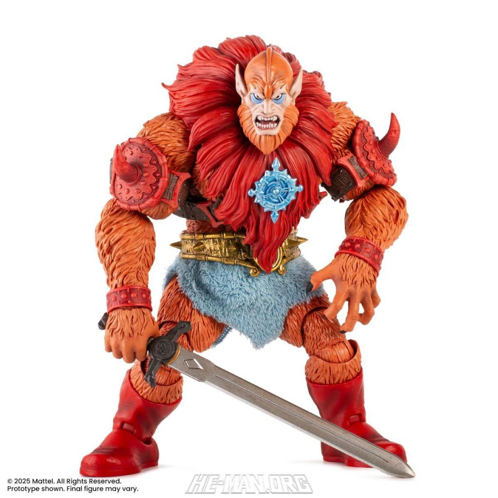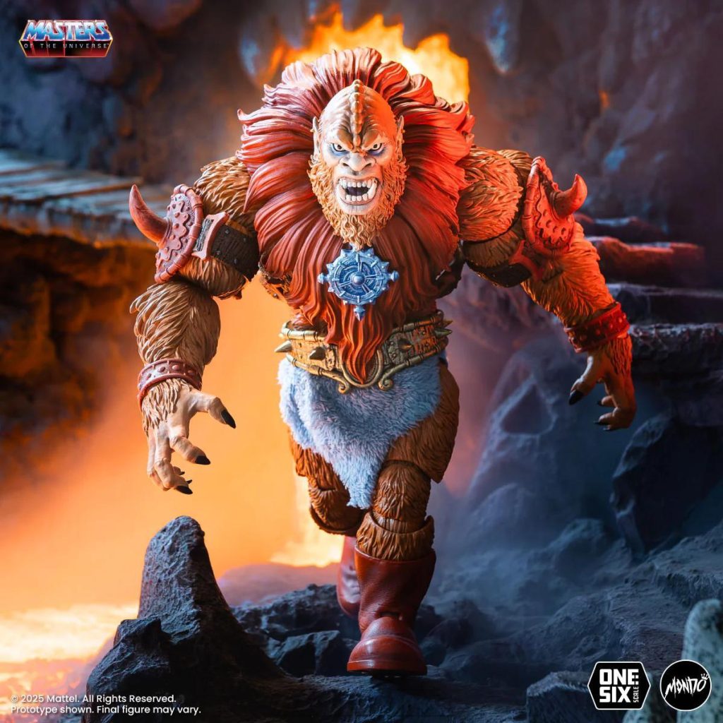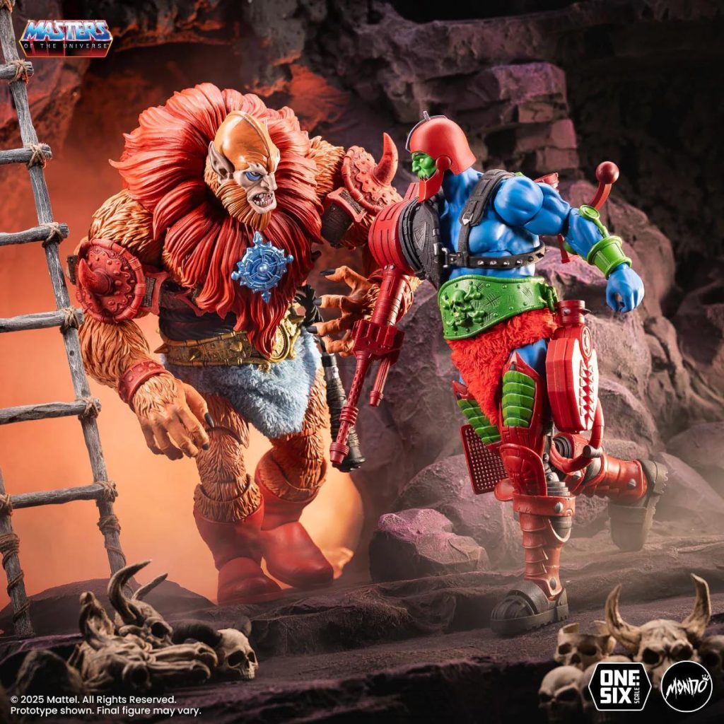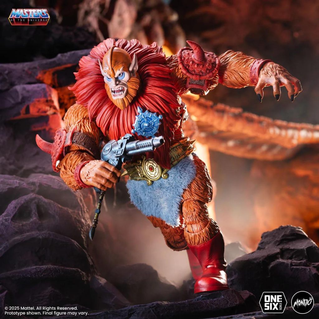 Mondo’s Classic Variant of Beast Man was based on the character as he appeared in the Filmation He-Man and the Masters of the Universe cartoon. He included four sets of hands, four heads, a whip, a goblet, meat, a sword, and a gun based on his appearance in the 1987 Masters of the Universe movie.