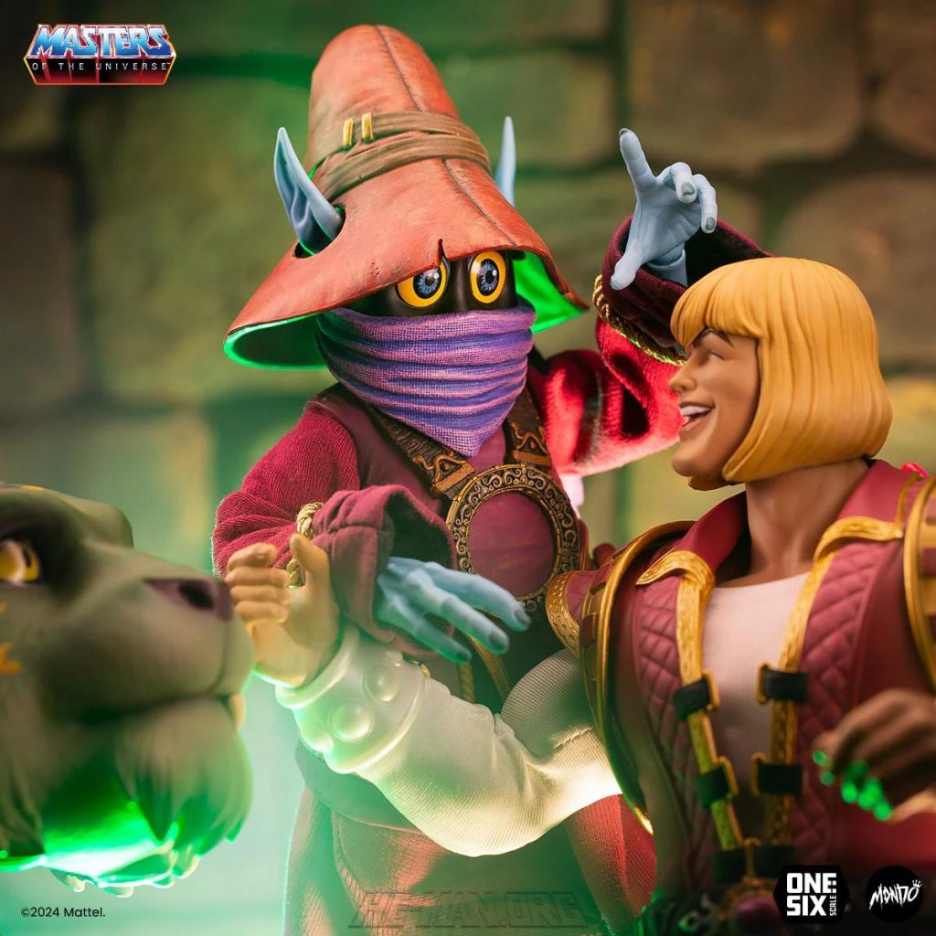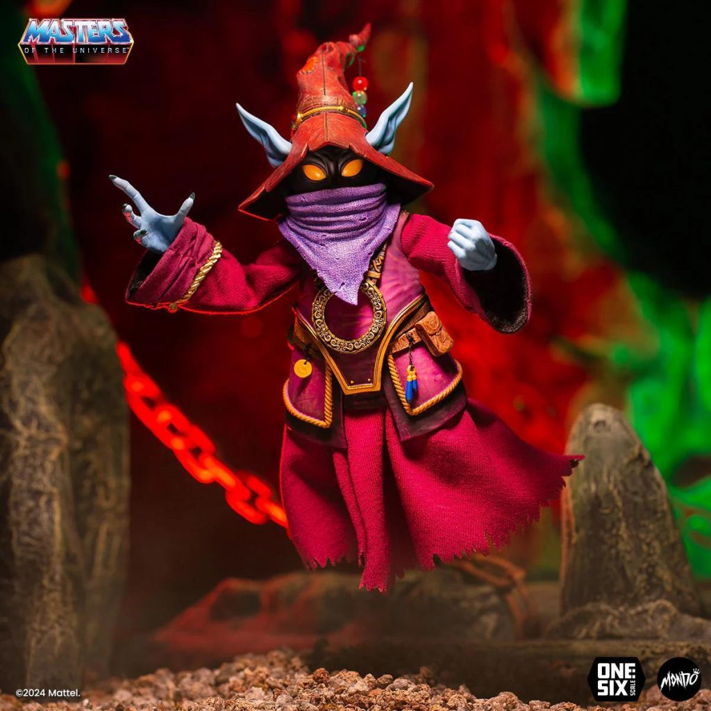 Mondo’s v2 1/6 scale Orko figure drew inspiration from the Filmation He-Man cartoon, as well as the 2002 Mike Young Production series. The figure came with three heads, four mini figures, three stands, a magic effect, a wand, thirteen hands, including one with a magic effect.