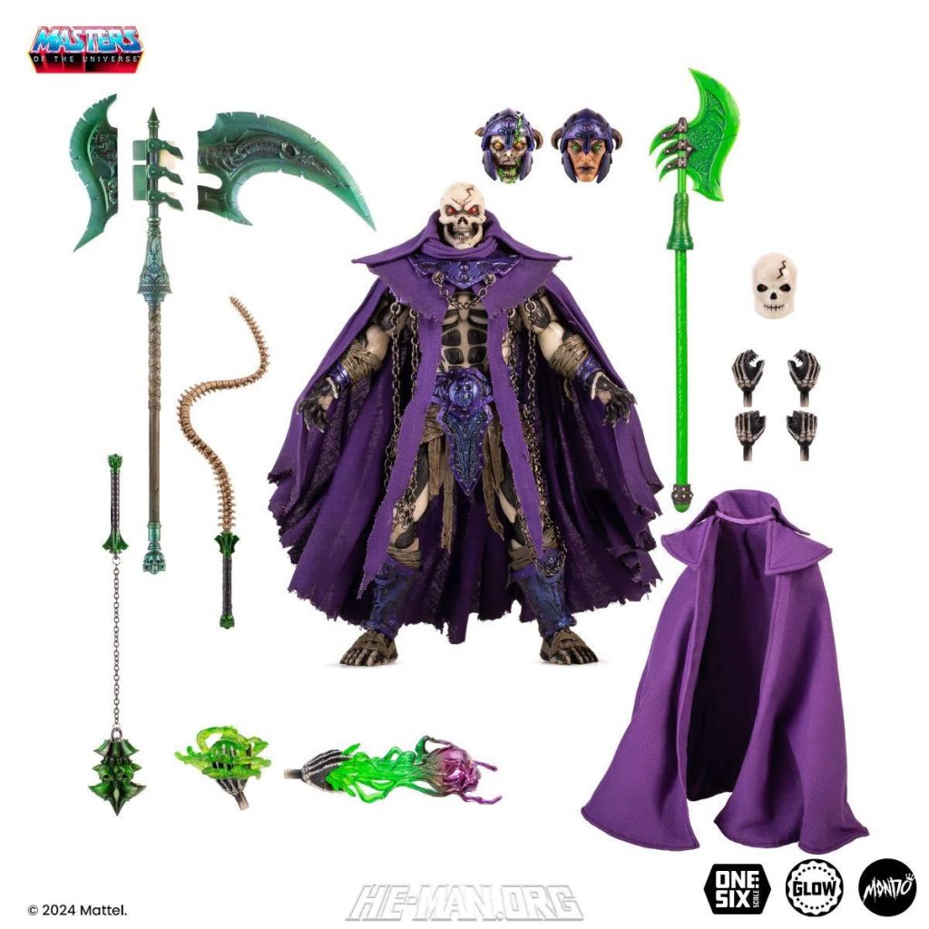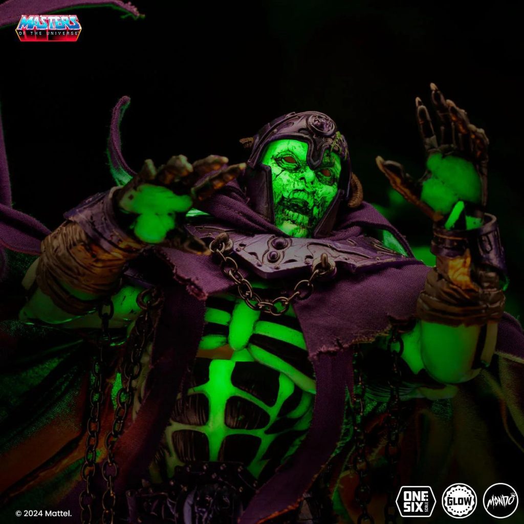 Mondo’s third 1/6 scale Scareglow figure featured two versions of the “Scythe of Doom, four different heads, a bone whip, a chain weapon, multiple magic effects and extra hands, and two different cloth goods cloaks.