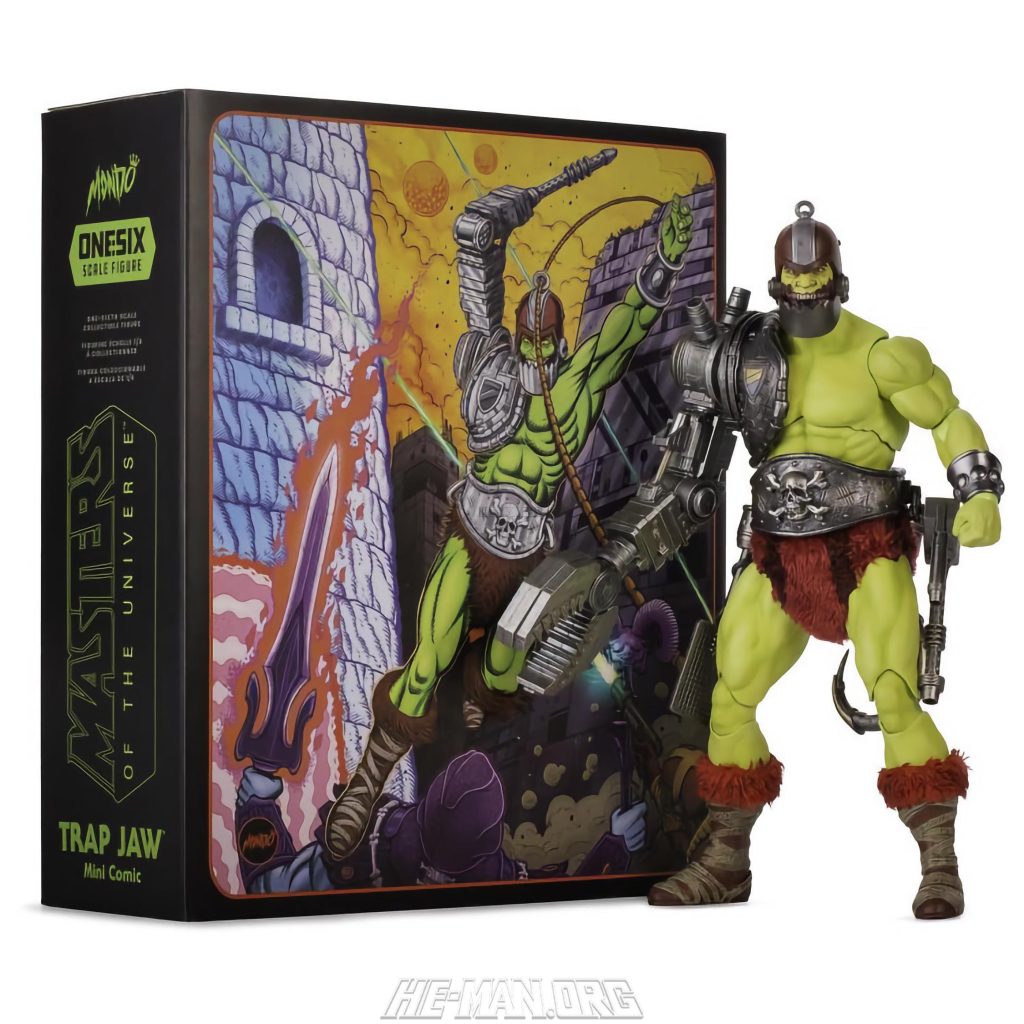 Mondo’s 1/6 scale Trap Jaw Mini Comic Variant was based in his appearance in his original mini comic, The Menace of Trap Jaw. He came with six removable attachments and an extra left hand.