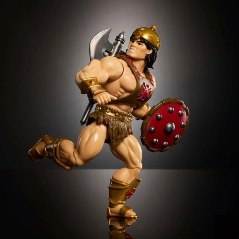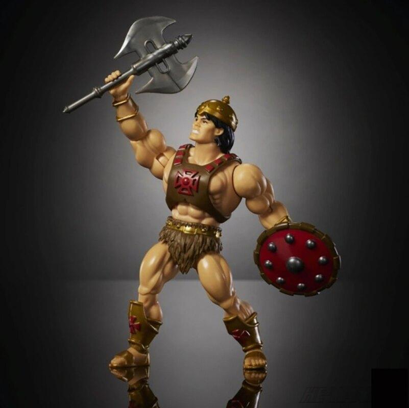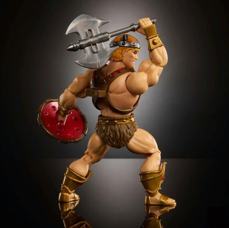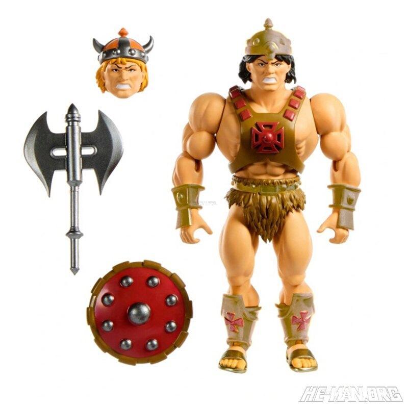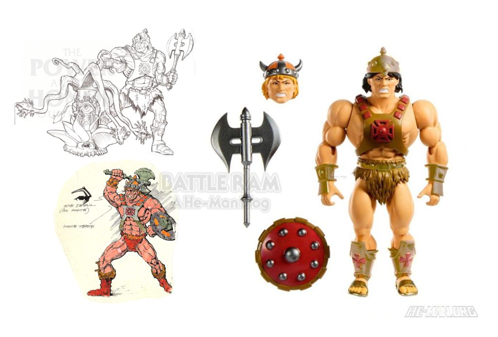 More photos of the Sketch Book Mark Taylor He-Man in the MOTU Origins line have just been released! While the figure is mainly based on an earlier, sandal-wearing He-Man concept (the image of He-Man battling a plant monster), it also includes another head with a horned helmet, which is based on Mark Taylor’s revised He-Man B-sheet design that he came up with a few months later!