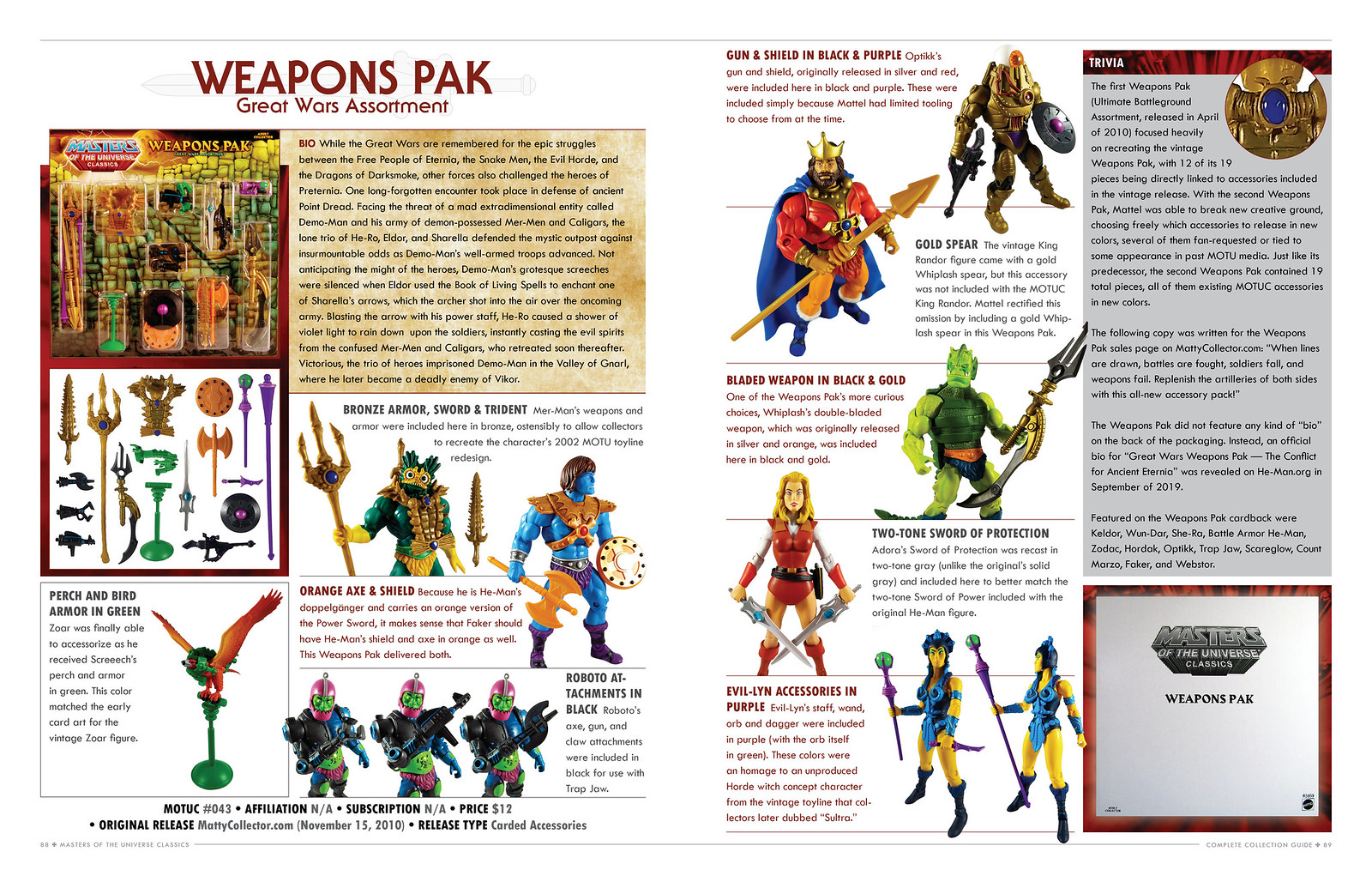 HomeMOTU ClassicsMOTU Classics Great Wars Weapons Pak (Nov. 2010) MOTU Classics Great Wars Weapons Pak (Nov. 2010)By Adam McCombs / July 19, 2025 The content in this section comes to us courtesy of Wakko, author of the Masters of the Universe Classics Unofficial Collection Guide!