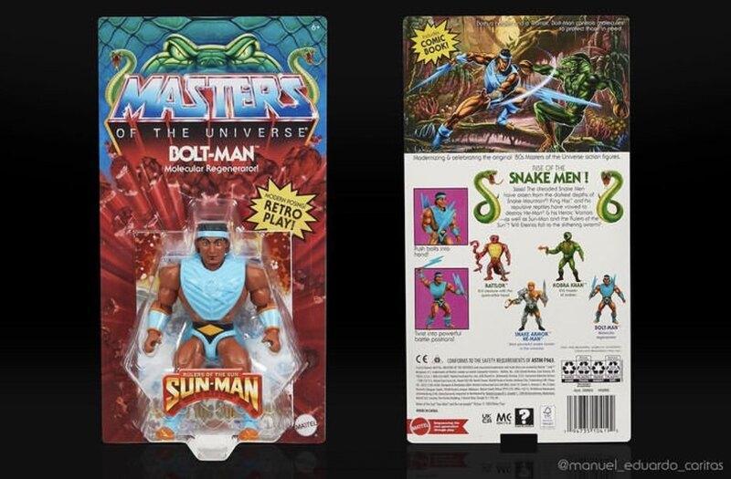 MOTU Origins Bolt Man was based on the original 1980s Rulers of the Sun figure. He came with removable armor and two lightning bolt weapons, which could be stored on his back.