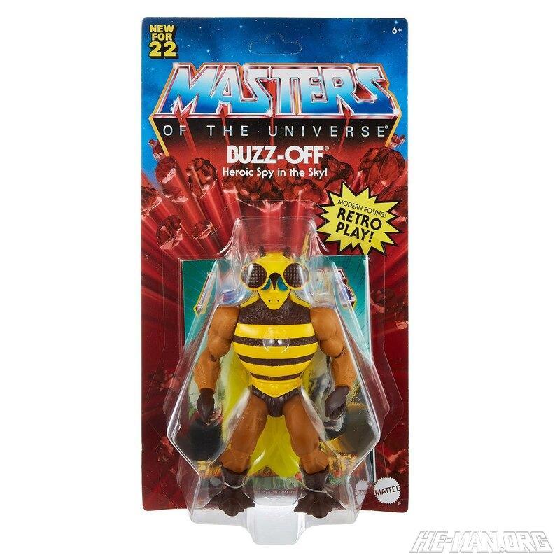 MOTU Origins Buzz-Off is closely based on the 1984 Masters of the Universe figure. He came with an axe and a helmet, and had articulated, translucent wings. His antennae were longer than the vintage figure and helped to keep his helmet firmly anchored in place.