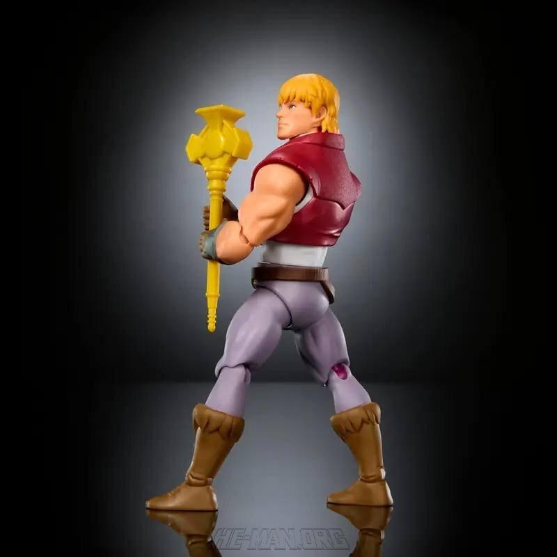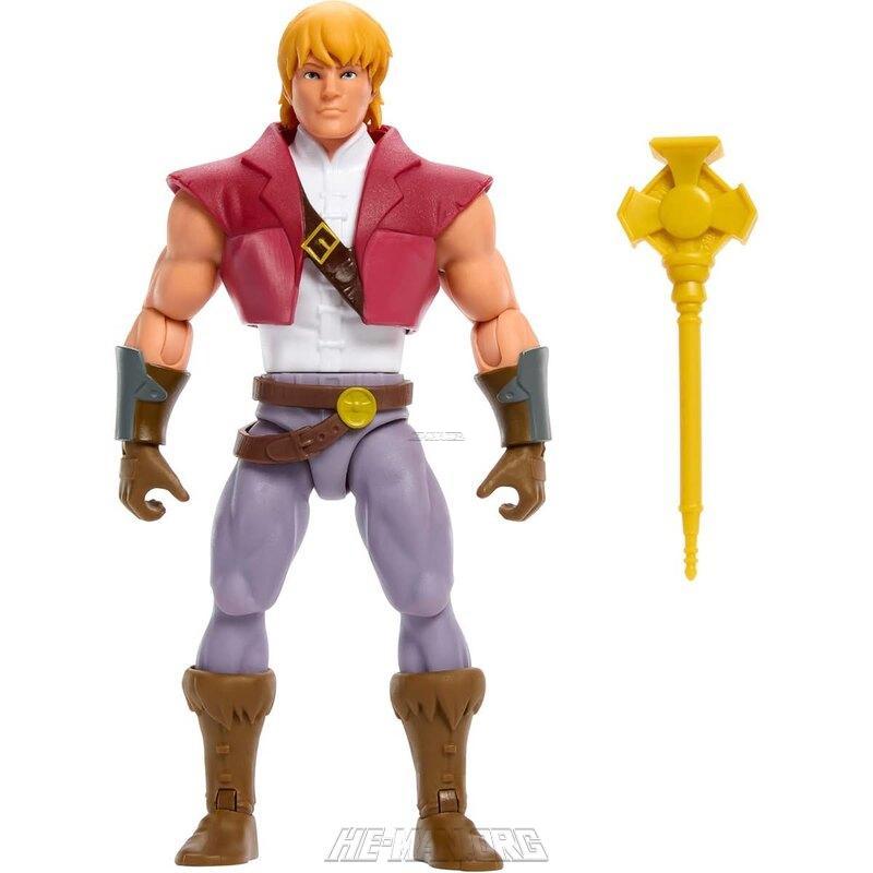 The MOTU Origins Cartoon Collection 200x Prince Adam figure was closely based on the the character as he appeared in the 2002 Mike Young Productions He-Man and the Masters of the Universe program. He came with a scepter accessory.