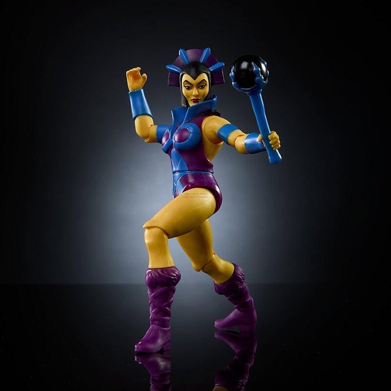 MOTU Origins Cartoon Collection Clawful was based on the character as she appeared in 1983 He-Man and the Masters of the Universe series produced by Filmation. She came with her magic wand and the Shaping Staff from the episode of the same name. She did not, however, come with her signature cape.