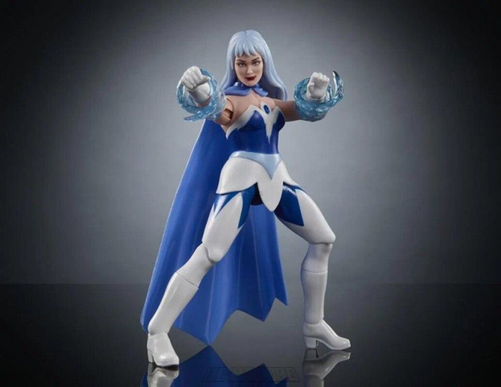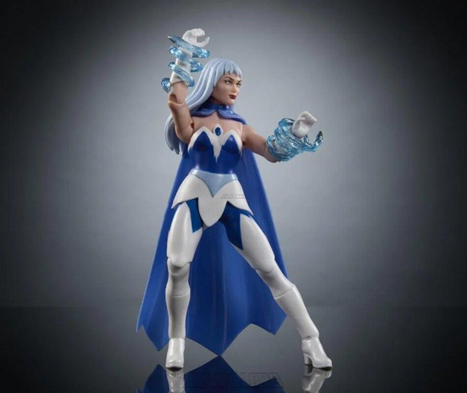 MOTU Origins Cartoon Collection Frosta was based on the character as she appeared in 1985 She-Ra: Princess of Power series produced by Filmation. She came with a removable cape and two ice effects that could fit over her arms.