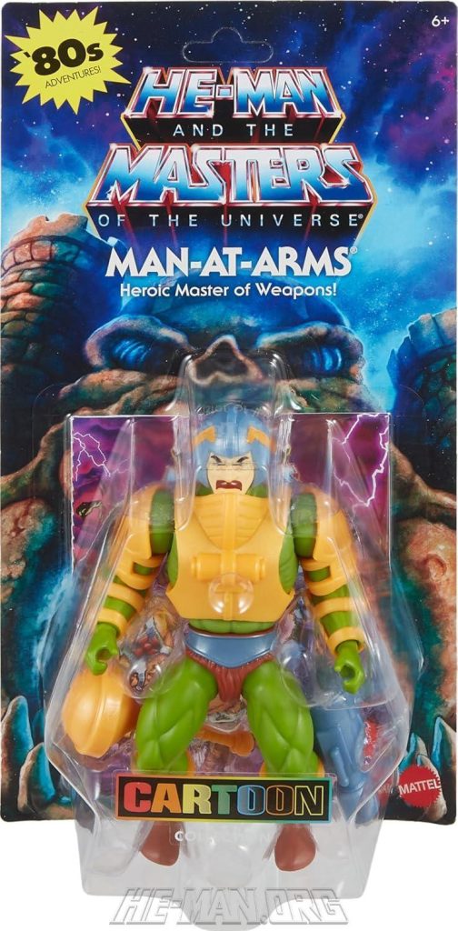 MOTU Origins Cartoon Collection Filmation Man-At-Arms was based on the character as he appeared in the 1983 He-Man and the Masters of the Universe series produced by Filmation. Duncan came with his club, removable armor, and the Stasis Ray from the episode, “The Dragon Invasion.”