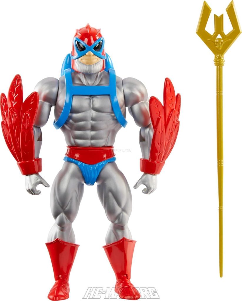 MOTU Origins Cartoon Collection Filmation Stratos was based on the character as he appeared in the 1983 He-Man and the Masters of the Universe series produced by Filmation. Stratos came with removable wings and a removable harness, as well as the Staff of Avion, which appeared in the episode, “Reign of the Monster.”