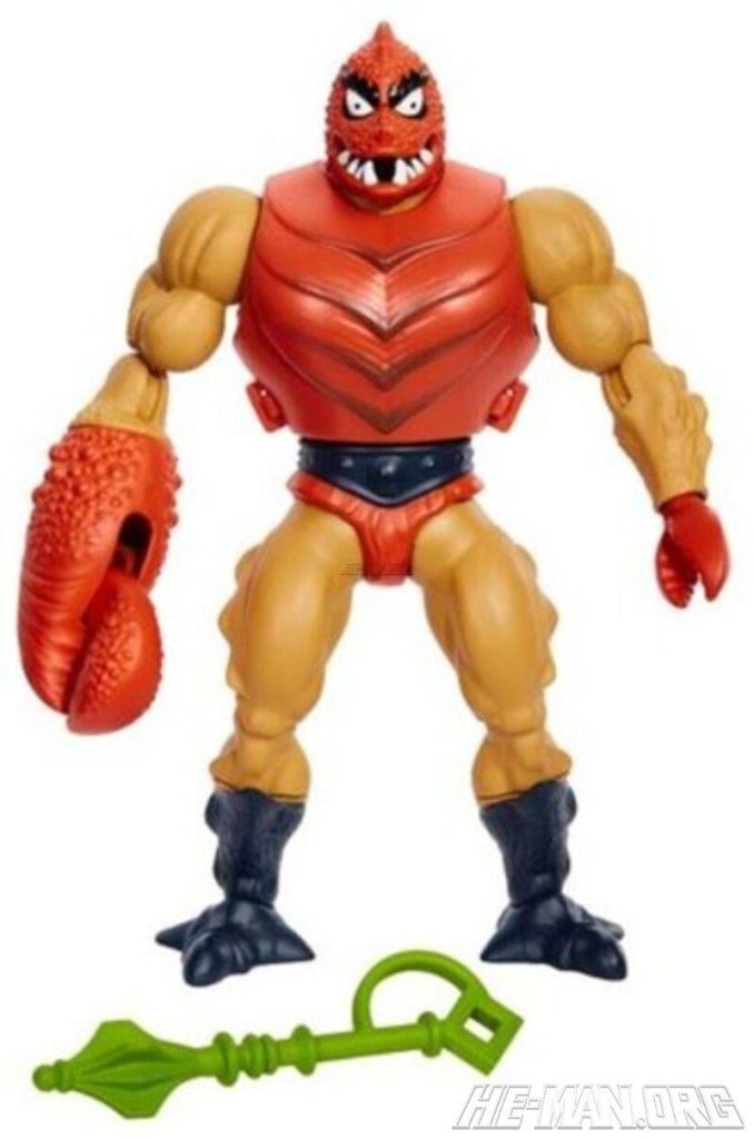 MOTU Origins Clawful was closely based on the 1984 Masters of the Universe figure. He came with removable armor and a green mace. Like the vintage figure, he had a large, spring-loaded snapping claw.