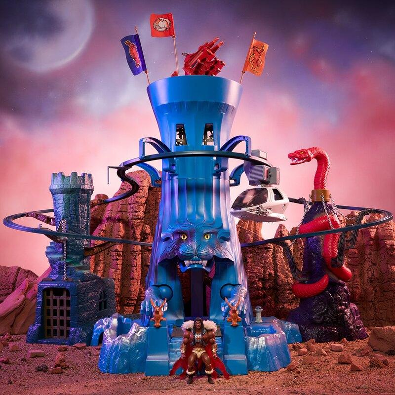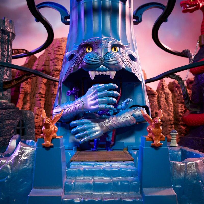 MOTU Origins Eternia Playset was closely based on the original 1986 toy. It retained the various action features of the original, along with several extras. It included a King Grayskull figure, based on the character’s portrayal in the Masters of the Universe: Revelation series. It also came with a moat monster (“Moaty”), a figure representation of a beast that was sculpted into the moat section on the original playset. Keclar was offered as a stretch goal incentive for the pre-order, but the minimum quantity was not met for it.