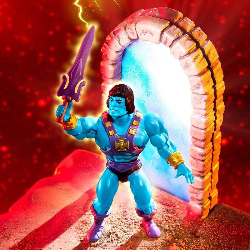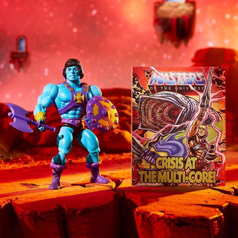 MOTU Origins He-Skeletor was based on the “Anti-Eternia” story, where Keldor used the Power Sword to become the heroic He-Skeletor. He came with removable armor, a purple Power Sword, and a purple shield.