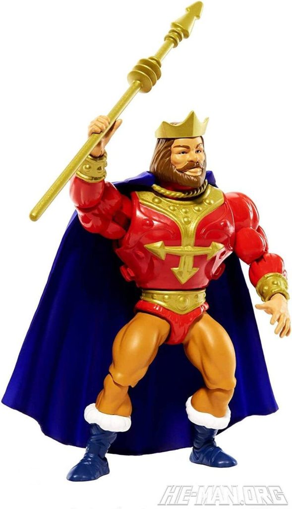 MOTU Origins King Randor was closely based on the 1986 Masters of the Universe figure. He came with removable armor, a removable cape, and a golden spear. Unlike the original King Randor, his cape was made of plastic instead of fabric.