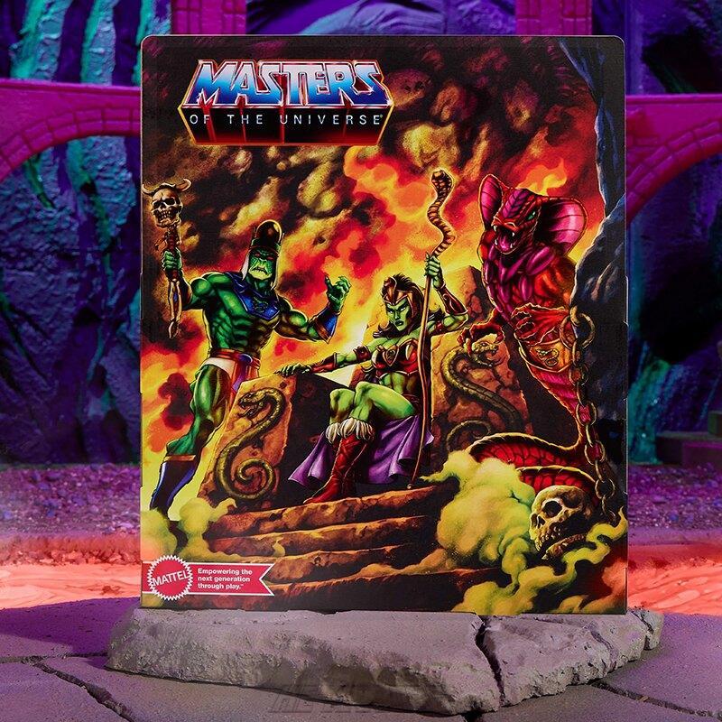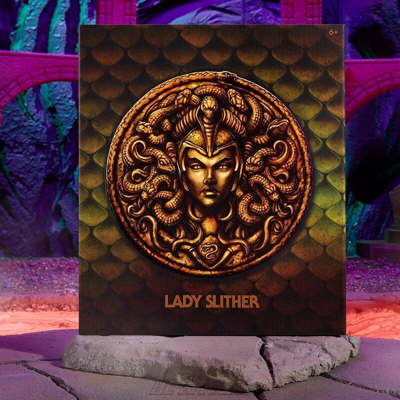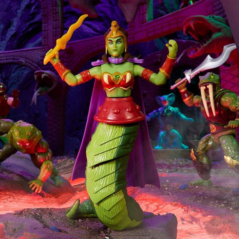 MOTU Origins Lady Slither was a character created by Axel Giménez. She came with a snake staff, a dagger, a removable cape, and an interchangeable snake body.