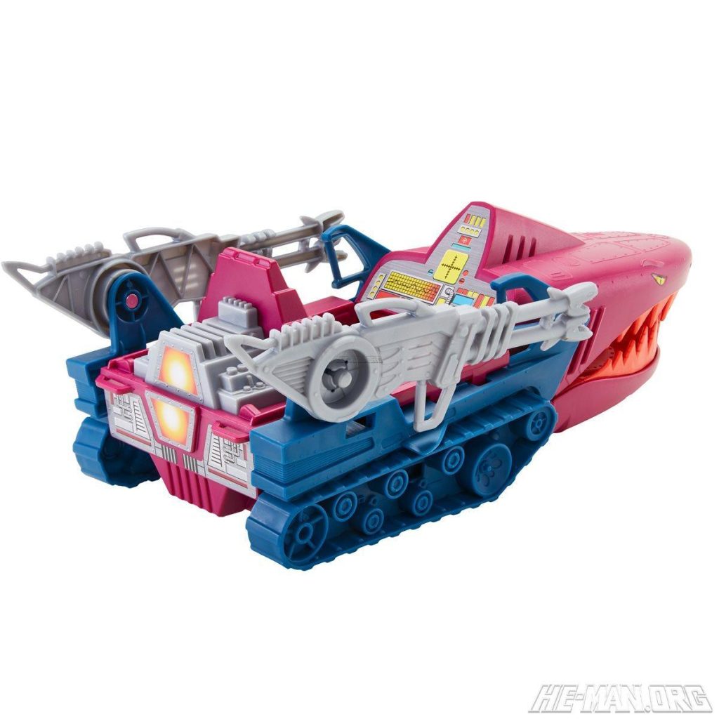 Land Shark was closely based on the vintage 1985 vehicle, and retained the original action feature. It was slightly larger than the original, and also included shark “mouths” on the side mounted guns.