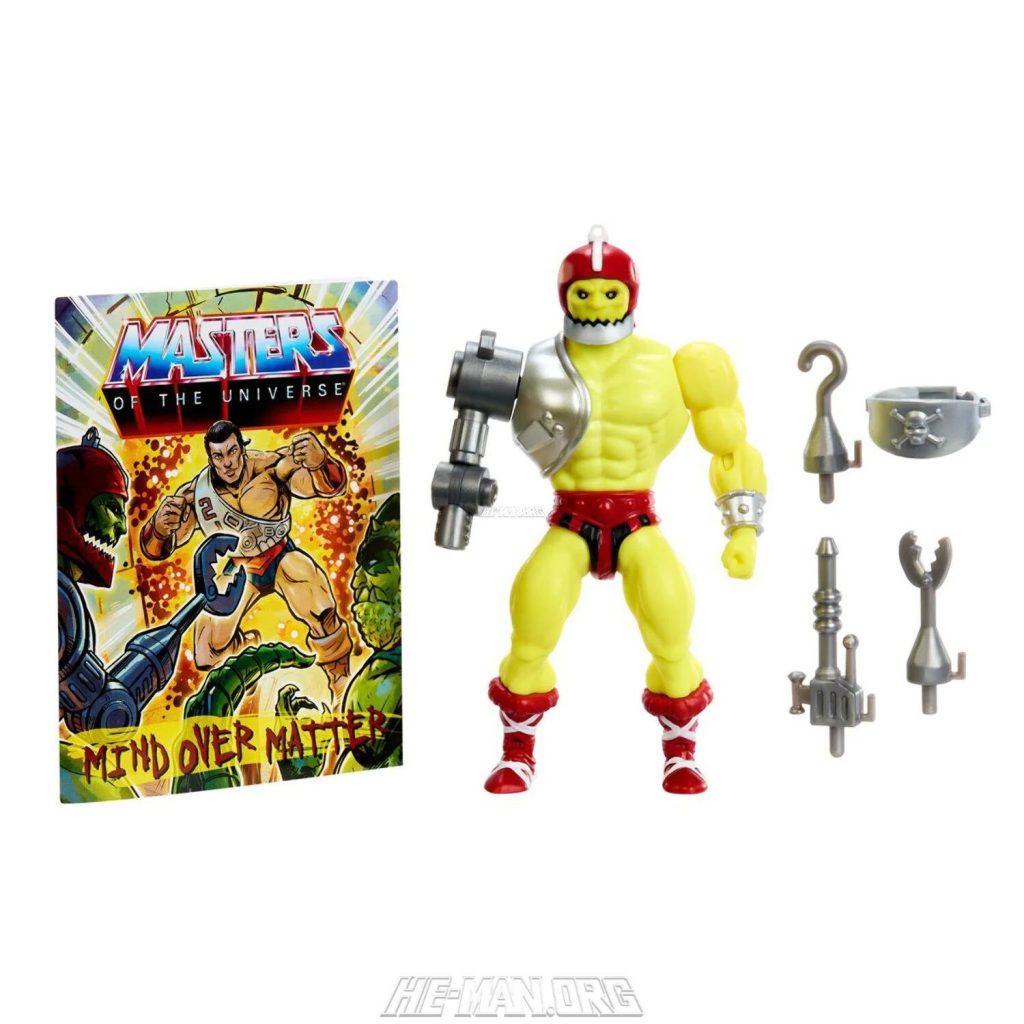 MOTU Origins Trap Jaw was based the character’s appearance in the vintage Menace of Trap Jaw mini comic. He came with a removable belt and three different attachments for his mechanical arm.