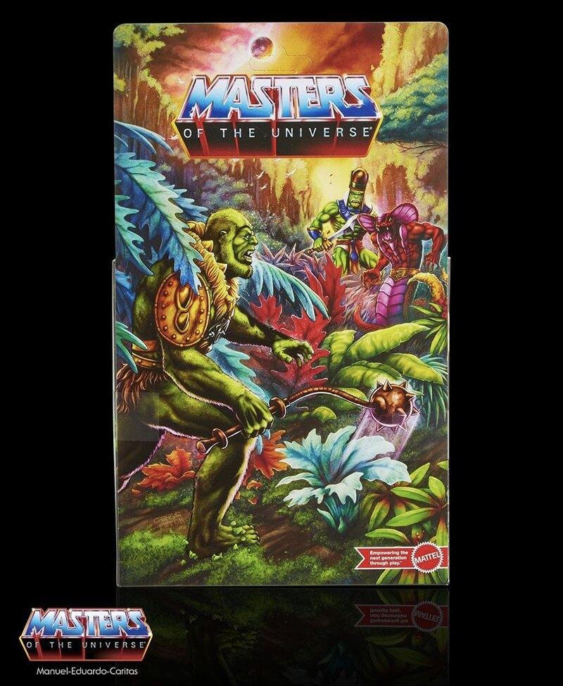MOTU Origins Trap Jaw was based on the original 1985 Masters of the Universe figure. Like the original figure, he was flocked, scented, and came with a mace weapon. He also came with a morning star weapon, an extra gripping hand, yellow Beast Man armor (based on the armor that came in the 1984 Weapons Pak) and a repainted head from the “Lords of Power” Beast Man figure. Packaging images via Roy Juarez.