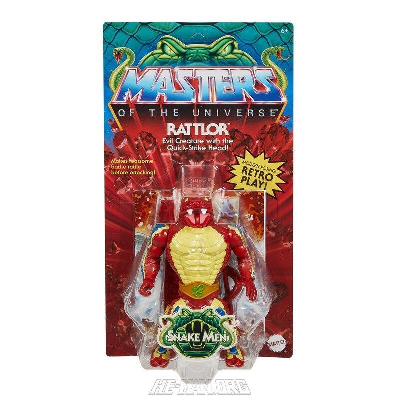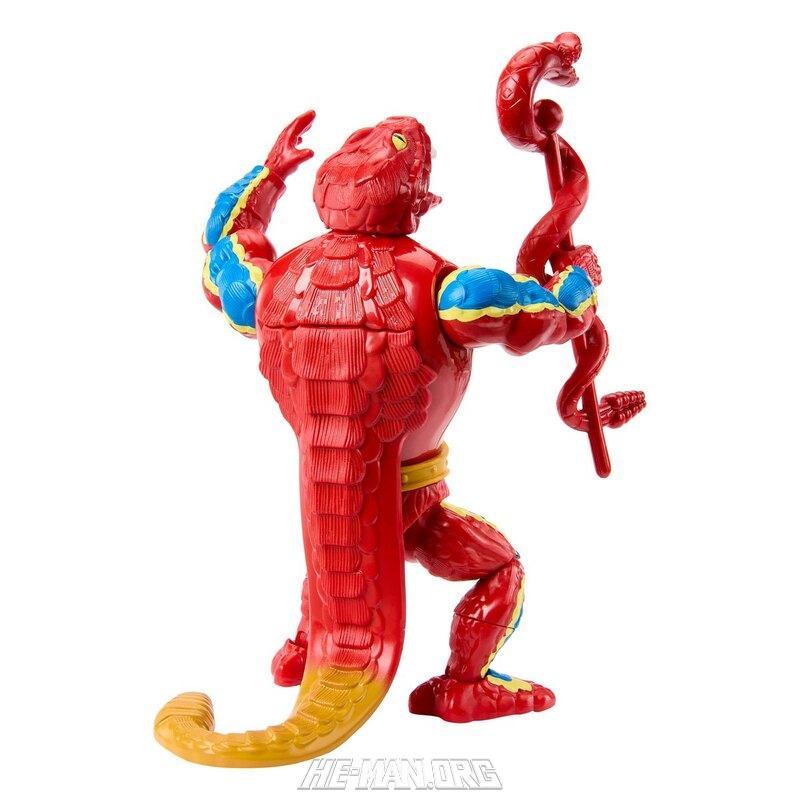 MOTU Origins Rattlor was based on the original 1986 Masters of the Universe figure. He came with a removable neck piece to simulate the pop-out feature of the original toy. He also came with his snake staff, and had a flexible rubber tail.