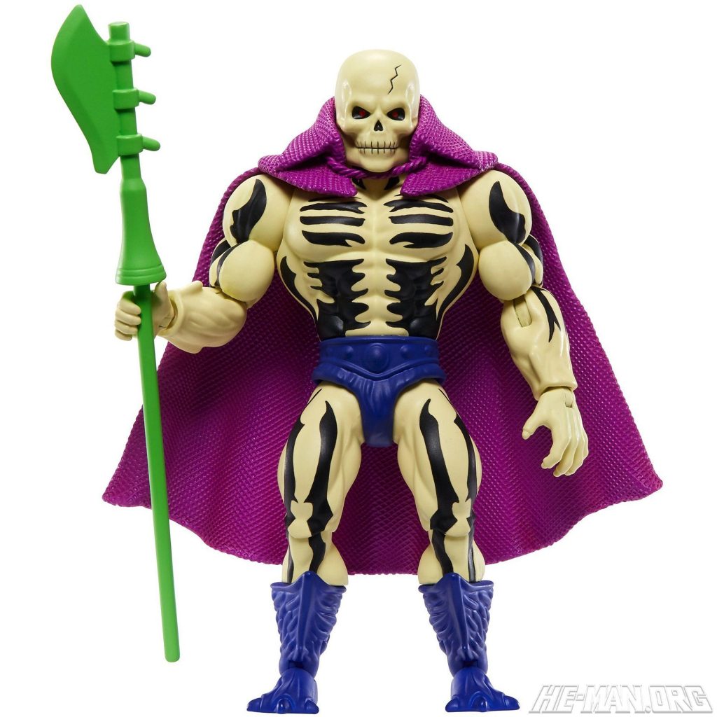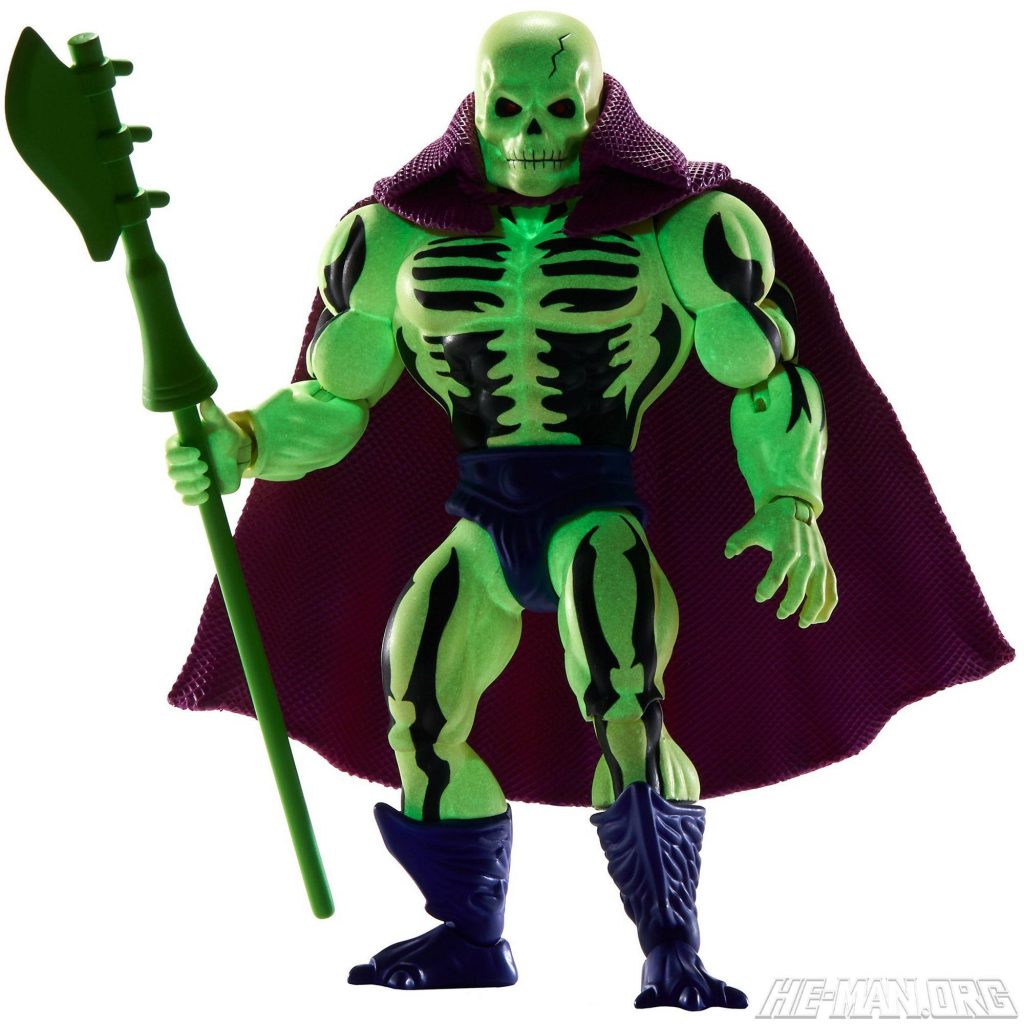 The MOTU Origins Scare Glow was based on the vintage toy, complete with a glow-in-the-dark body. He came with a “scythe of doom) and a removable plastic cape.