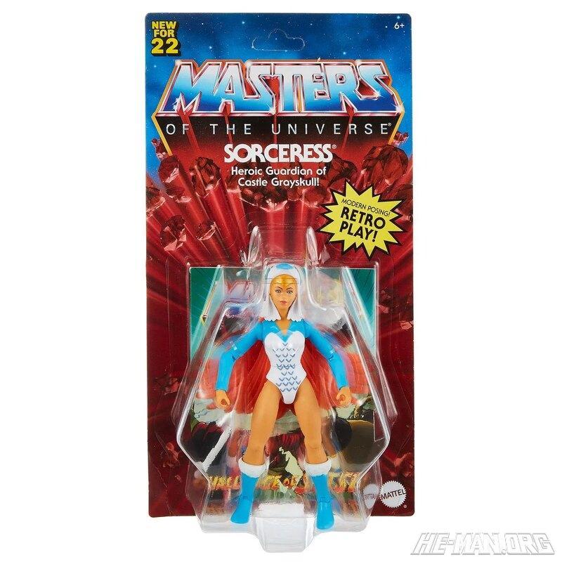 MOTU Origins Sorceress was based on the original 1987 Masters of the Universe figure. She came with a bird-shaped staff and articulated wings.