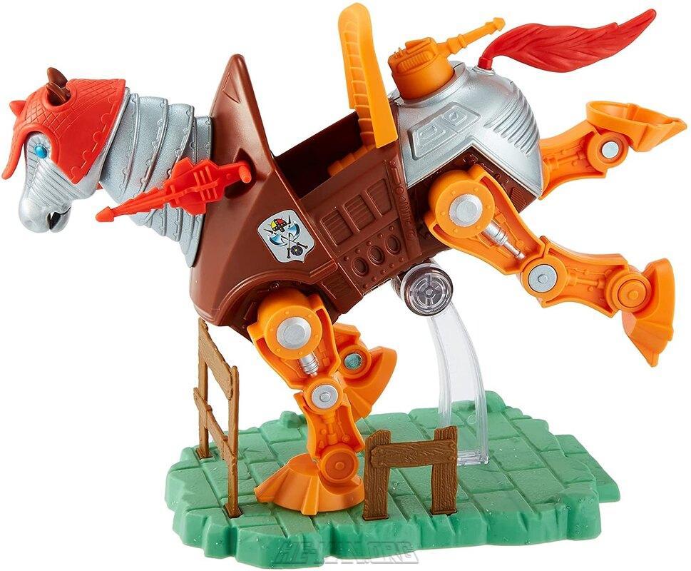 MOTU Origins Stridor was based on the original 1984 Masters of the Universe figure. He came with two removable helmets, a bridle, a stand, and several blast effects. Unlike the original Stridor, he was fully articulated.