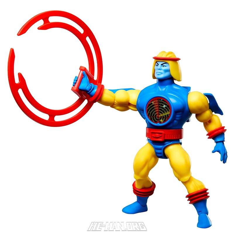 MOTU Origins Rokkon was based on the original 1985 figure. He came with a shield, a 200x-style ring that could attach to his back, and two tornado effects that could be plugged onto his arms.