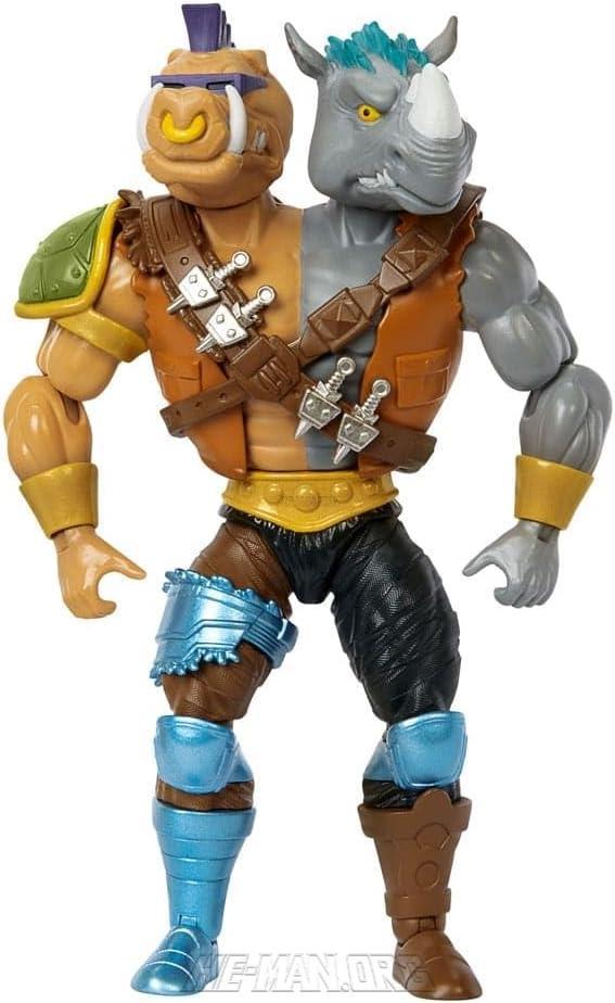 MOTU Origins Turtles of Grayskull 2-Bopsteady was the combination of Bebop and Rocksteady into a single Two Bad-like figure. He came with a sword and a ball and chain weapon that could be clipped onto the end of either arm.
