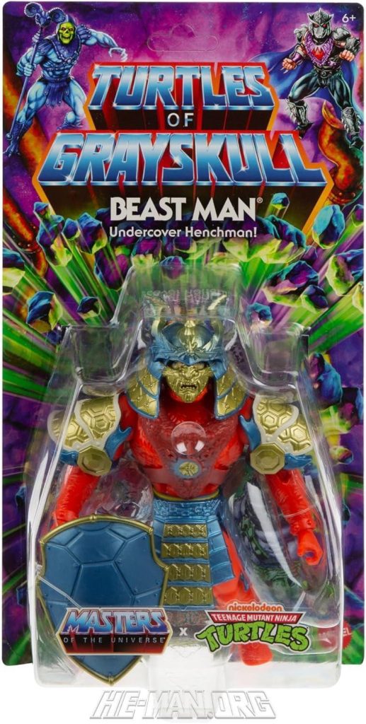 MOTU Origins Turtles of Grayskull Beast Man featured a slightly repainted version of his original chest armor, four new martial arts themed costume elements, along with whip and shield.