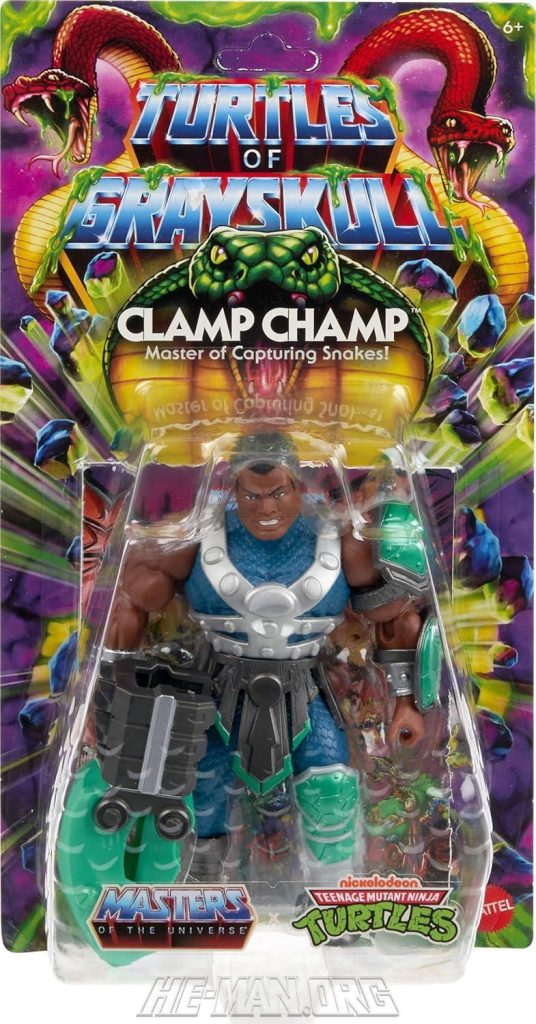 MOTU Origins Turtles of Grayskull Reptile Wars Clamp Champ featured unique best armor, a new belt, new leg and arm armor, and a reptile capturing clamp weapon.