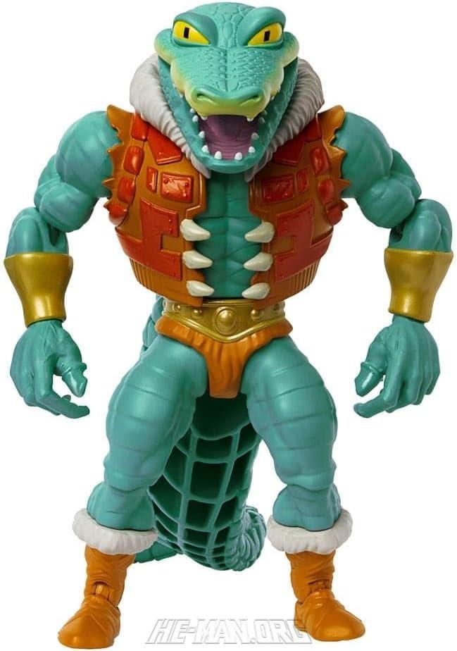 MOTU Origins Turtles of Grayskull Leatherhead came with a trap accessory, a removable vest, an articulated head, and a large tail.