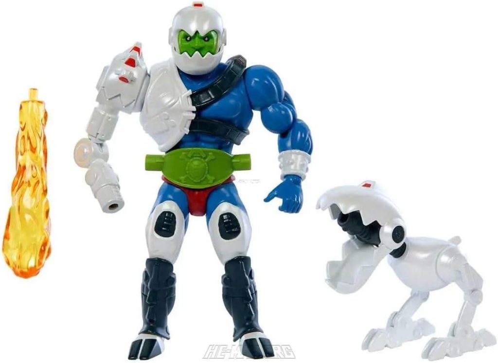 MOTU Origins Turtles of Grayskull Mouse-Jaw was a combination of Trap Jaw and Mouser. He came with various attachments for his mechanical arm, a blast effect, and a Mouser mini figure. The mouser could also be attached to the end of the figure’s mechanical arm.
